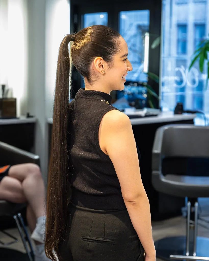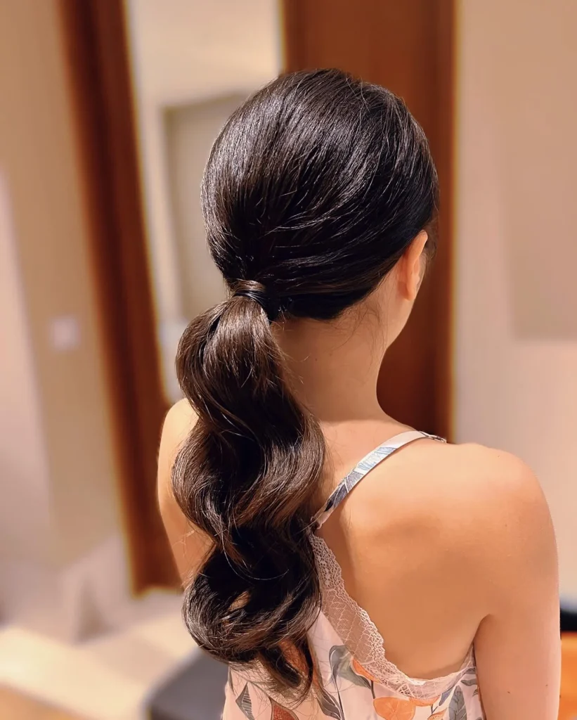 A sleek low ponytail is perfect for a polished, put-together look. It’s easy to achieve and ideal for both casual outings and formal events.