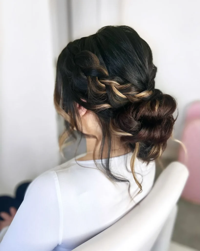 A low chignon is a classic choice, and when paired with braids, it becomes even more romantic. The textured layers create a stunning visual effect.
