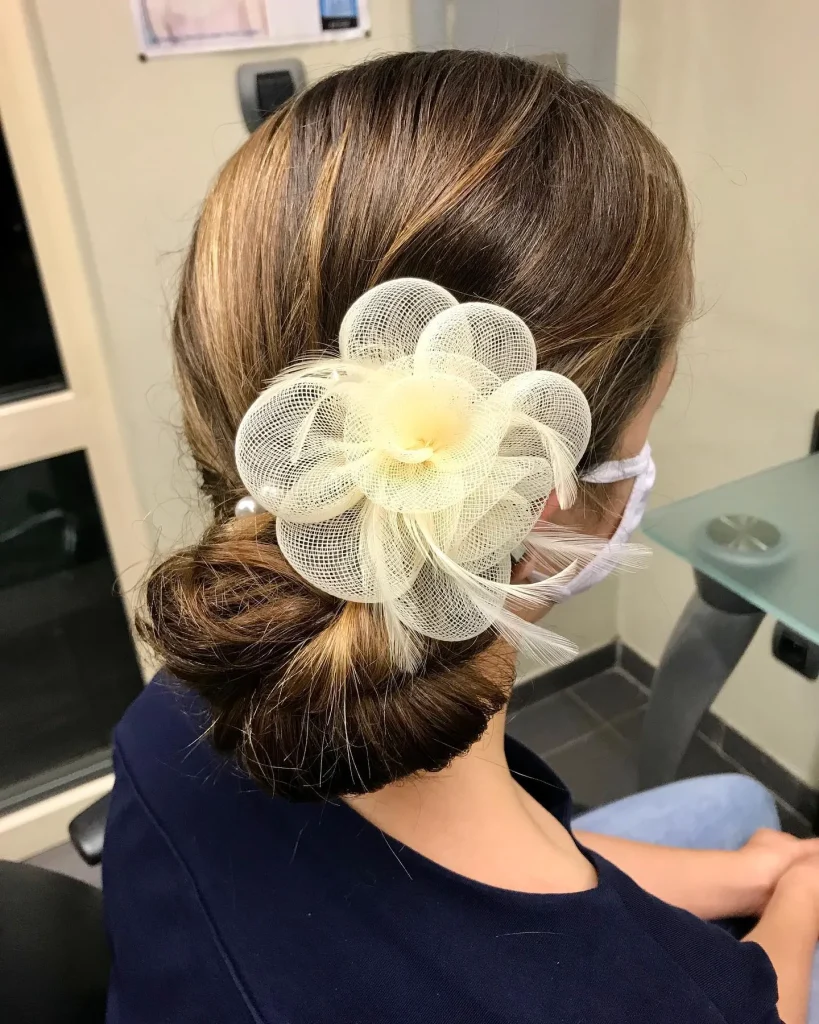 Incorporating flowers into your soft updo creates a dreamy, romantic look perfect for weddings or special occasions.