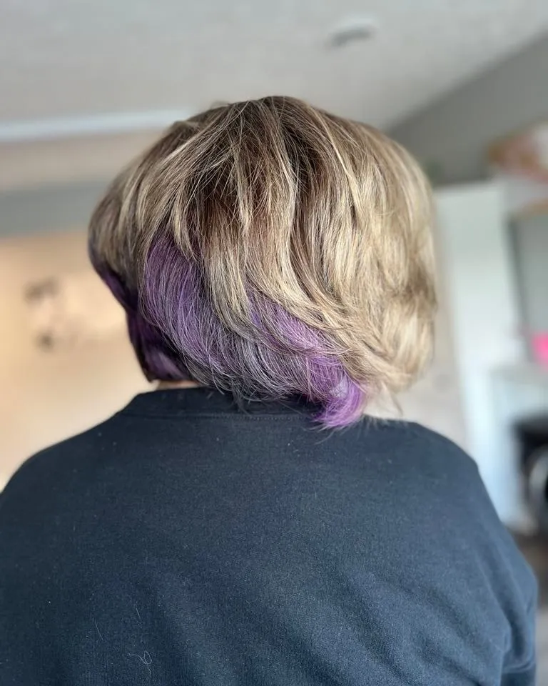 Add some peekaboo highlights to your layered bob for a fun, playful look. The hidden pops of color add a unique twist to your style.