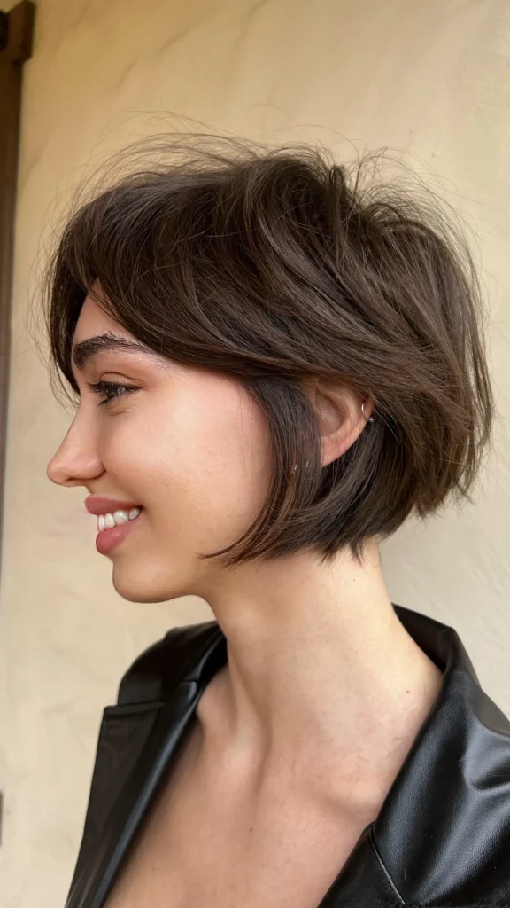 For a fun and playful vibe, go for a choppy layered bob. The uneven layers add texture and a carefree feel that’s perfect for casual styles.