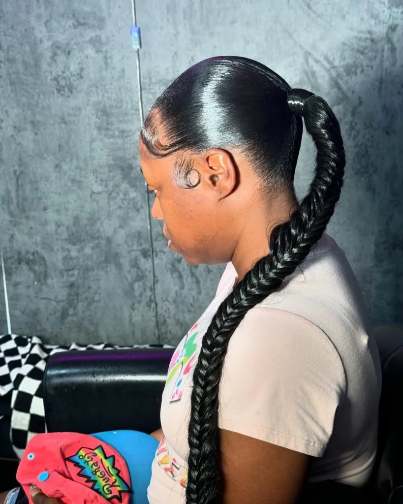 Ask for a “snatched high ponytail with a long, tight braid.” Emphasize that you want the base to be completely smooth and sleek with zero bumps.