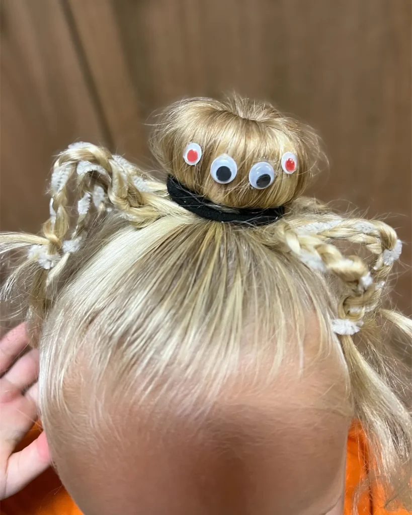 This is where creepy meets absolutely chic! We’re taking a classic bun and giving it a spooky, eight-legged makeover. It’s fun, creative, and an instant conversation starter.