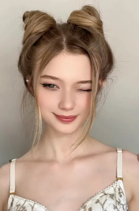 4. Voluminous Cat Ear Buns: Playful & Modern