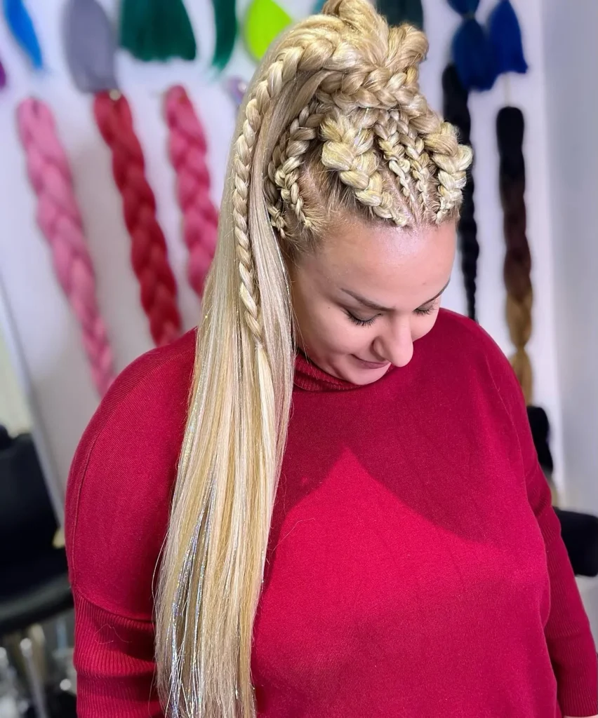 A sleek, slicked-back braid is a low-maintenance hairstyle that stays in place. This style is perfect for athletes who need a practical hairstyle that doesn’t compromise on style.