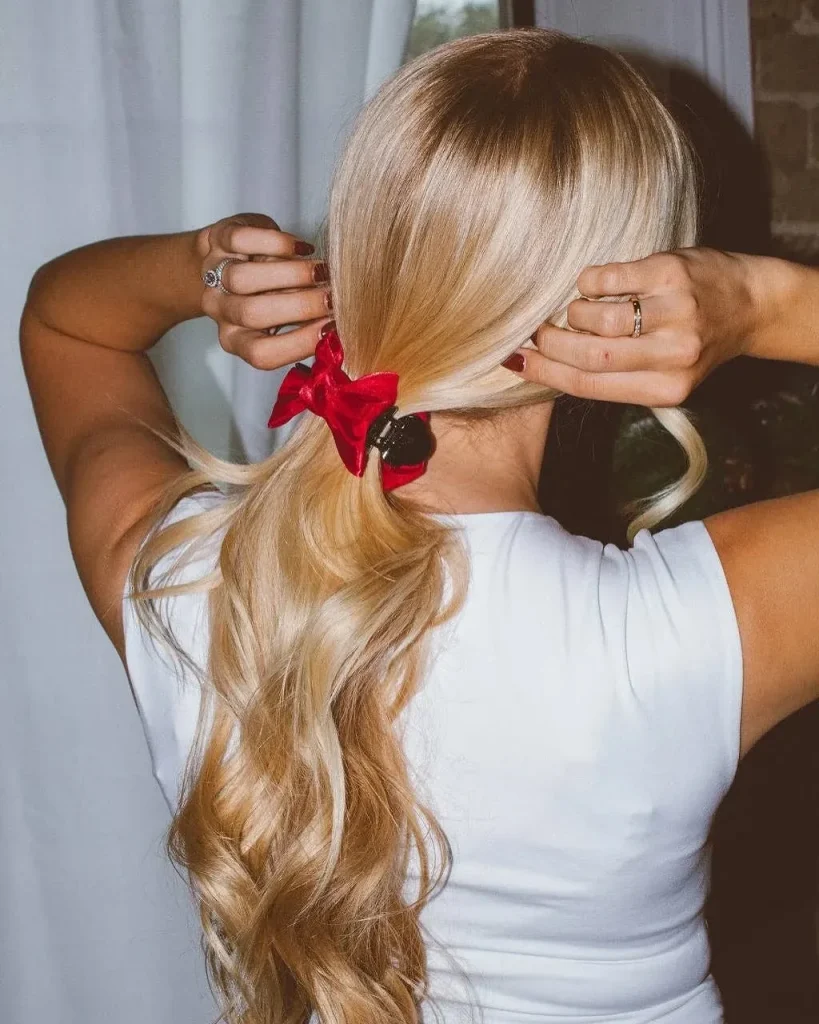 Add a little flair to your high ponytail with a bow. It’s a simple yet stylish addition that makes the hairstyle feel more fun and fashionable.