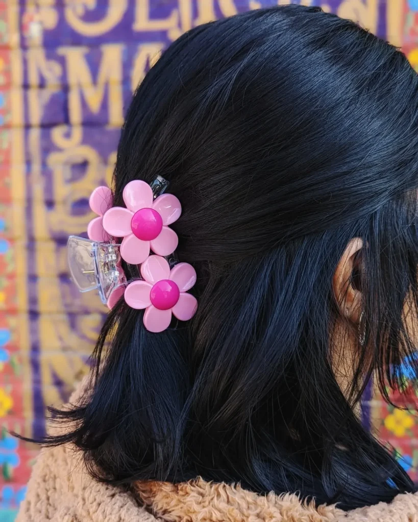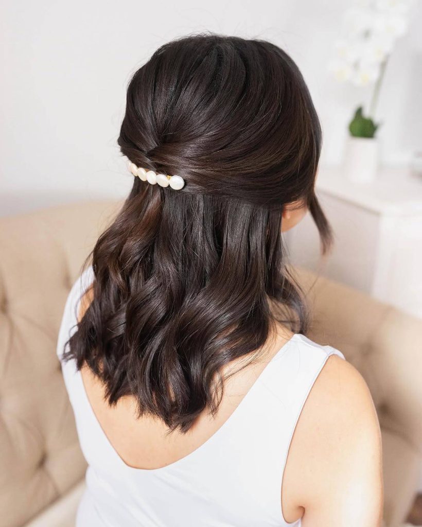 Add a touch of glam by pinning one or two statement hair clips on one side. It’s a simple yet stylish way to elevate your look.