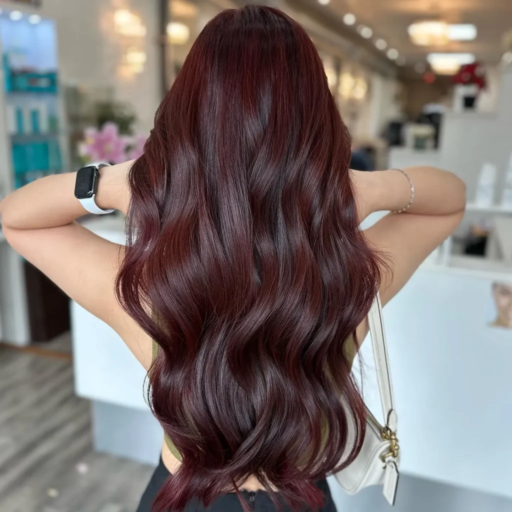 For a deeper, darker vibe, black cherry is a stunning option. This color combines deep brunette tones with rich, red undertones, creating a mysterious and sultry look that’s perfect for the hot summer nights.