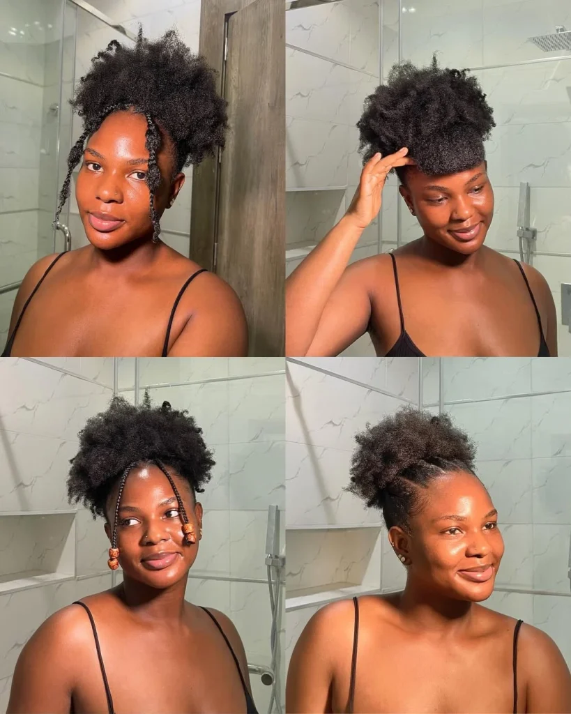 Bantu knots are stylish and practical, keeping your hair neatly tucked away while giving you a unique and trendy look.