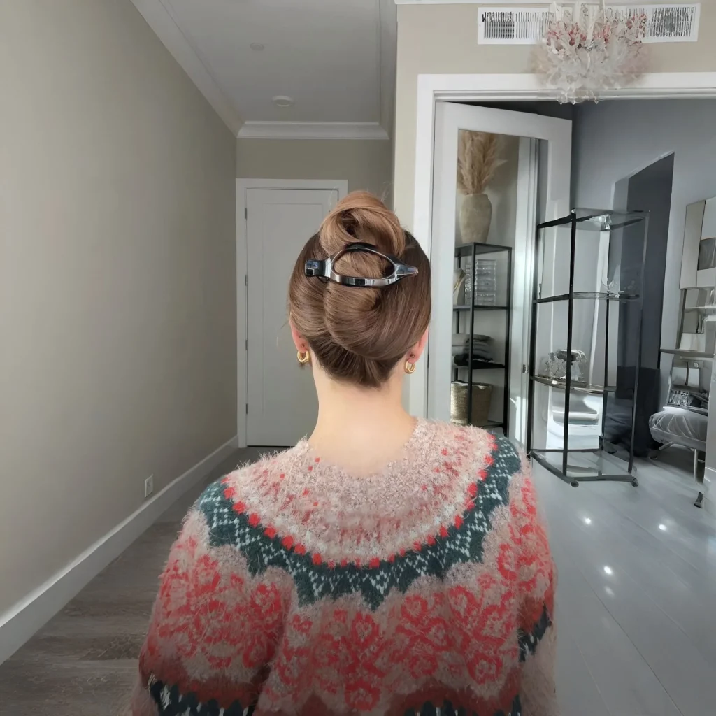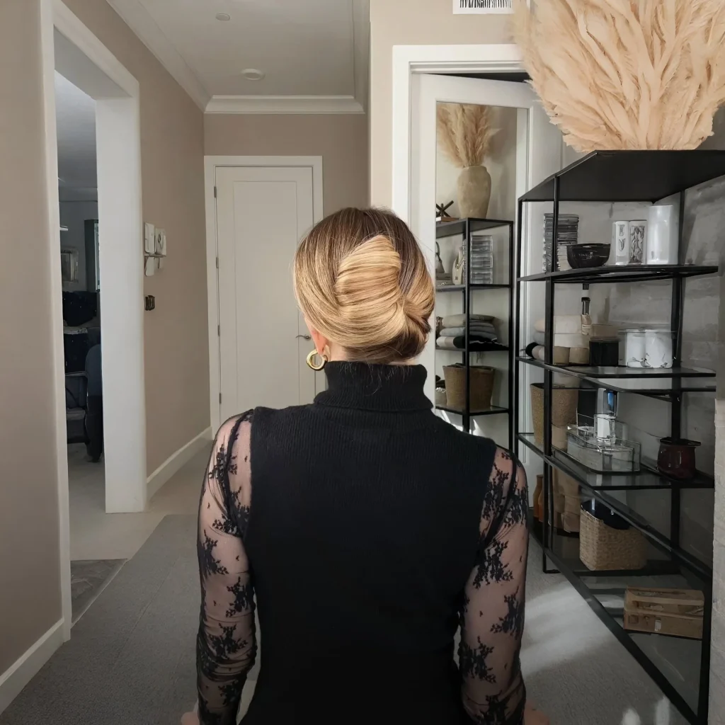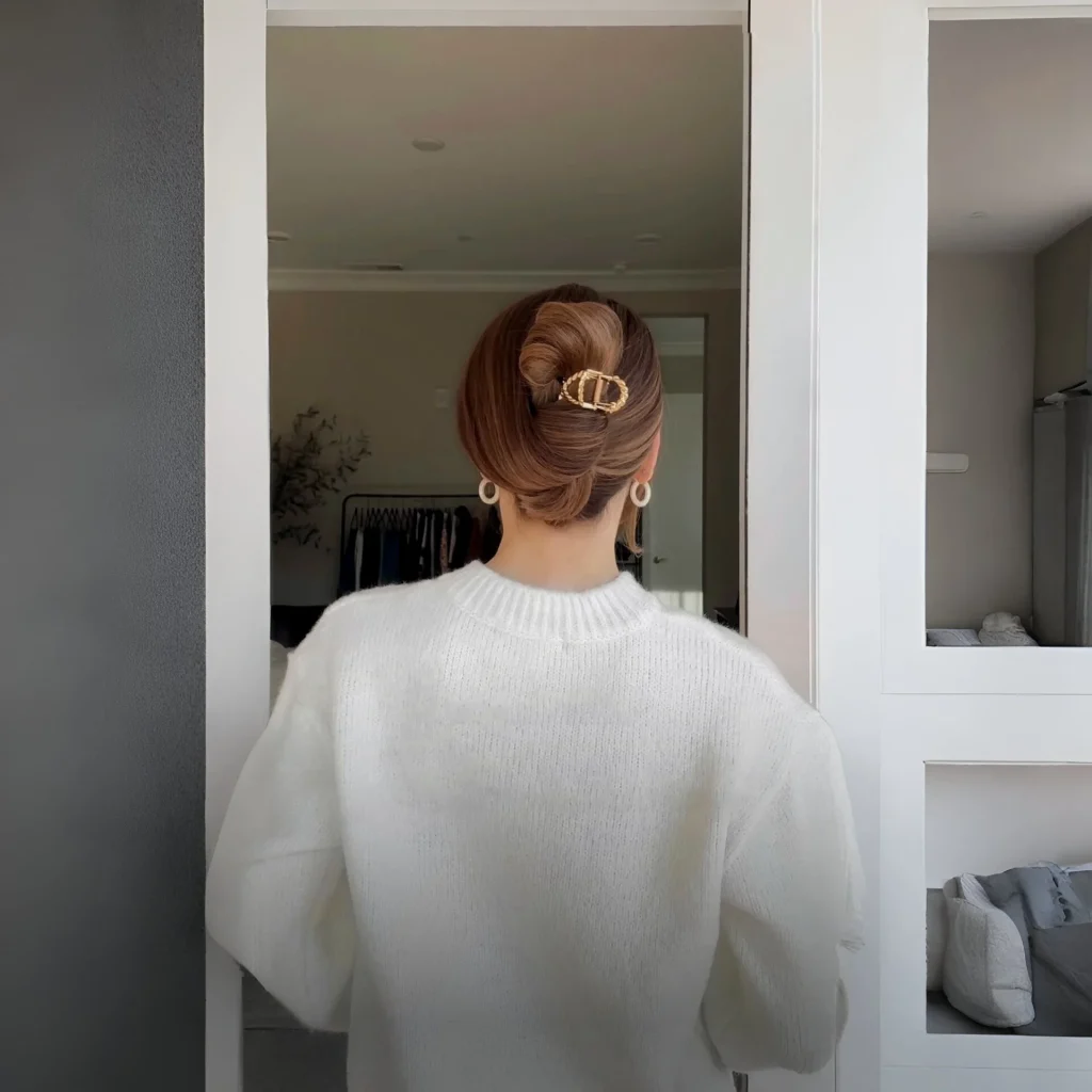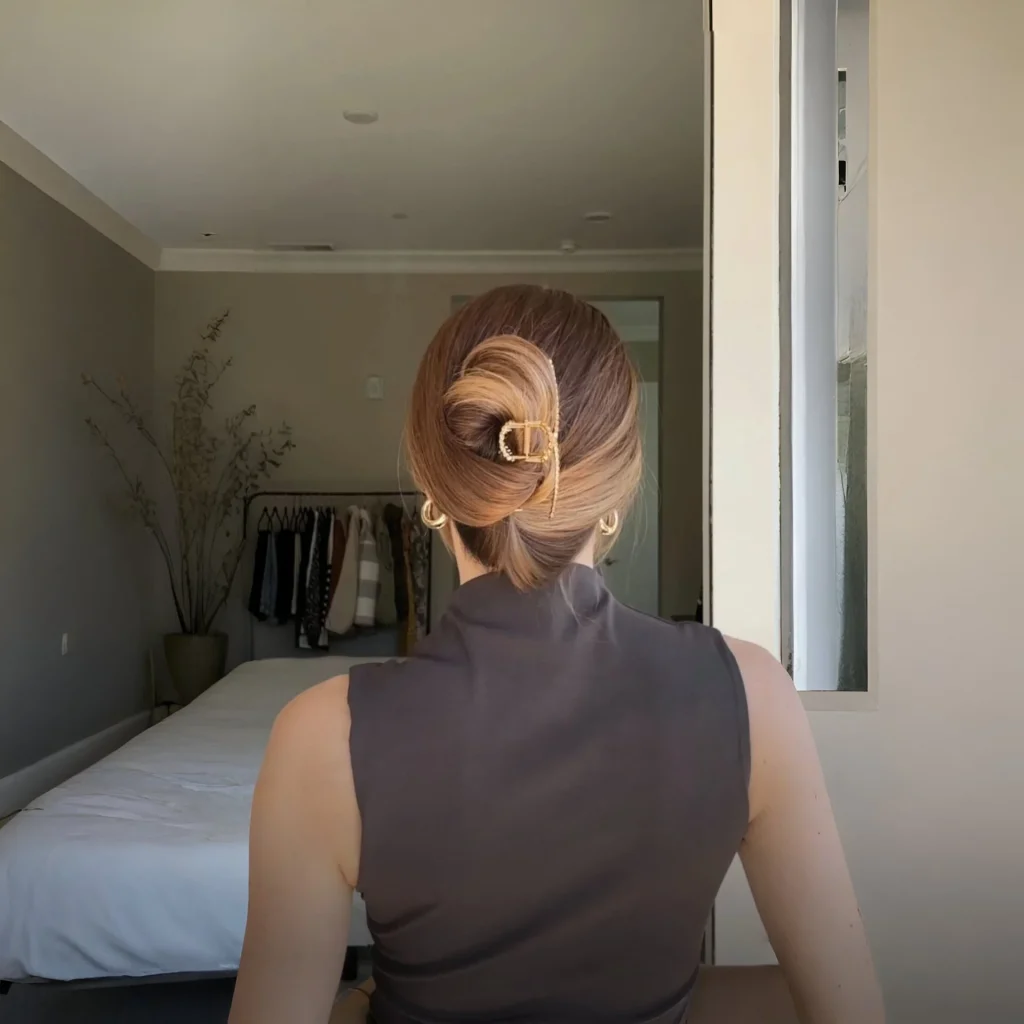 A swirling effect created with a claw clip, adding extra dimension to your updo.