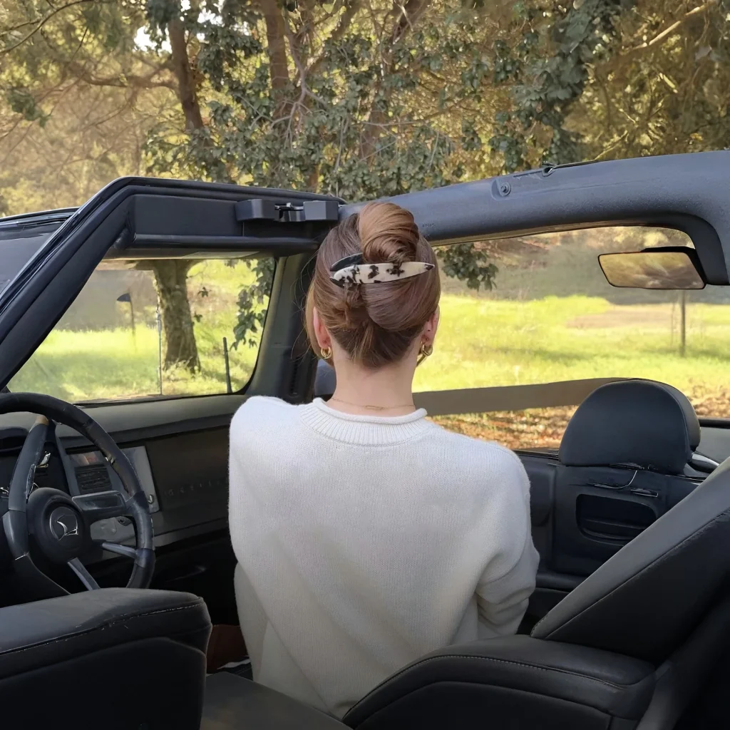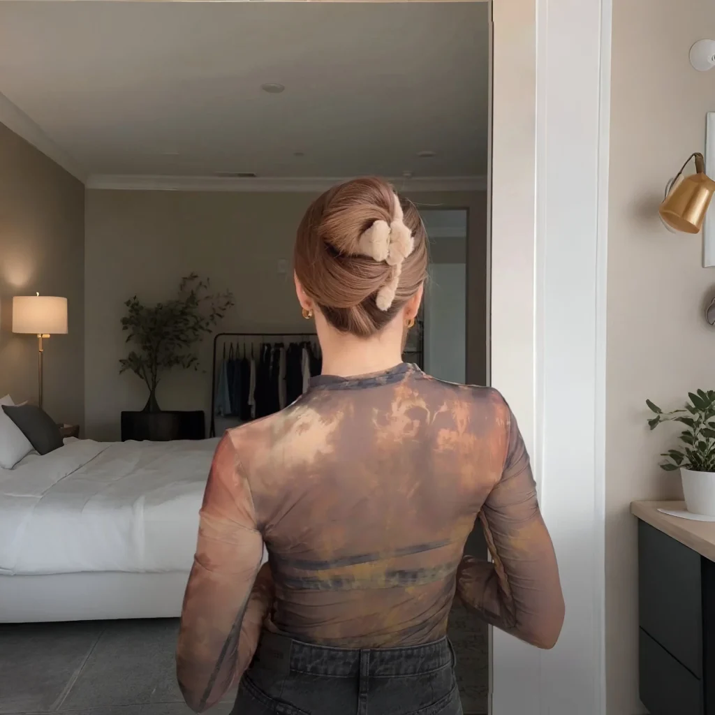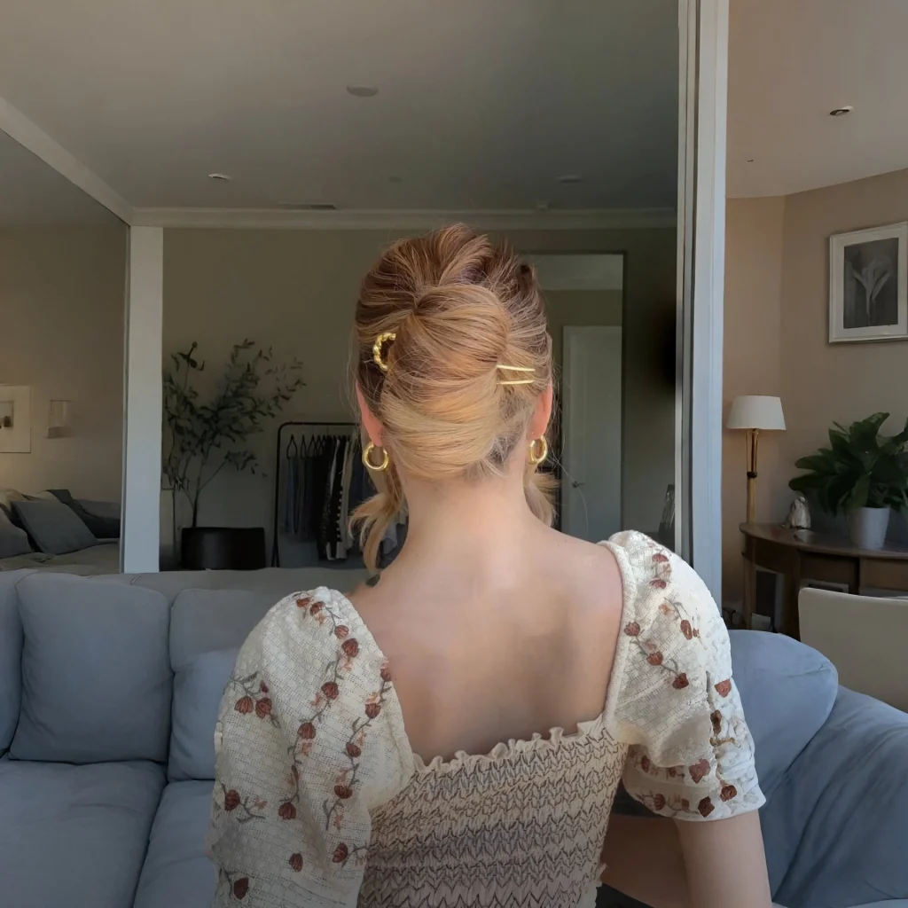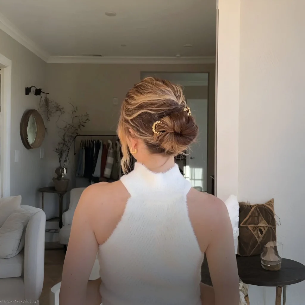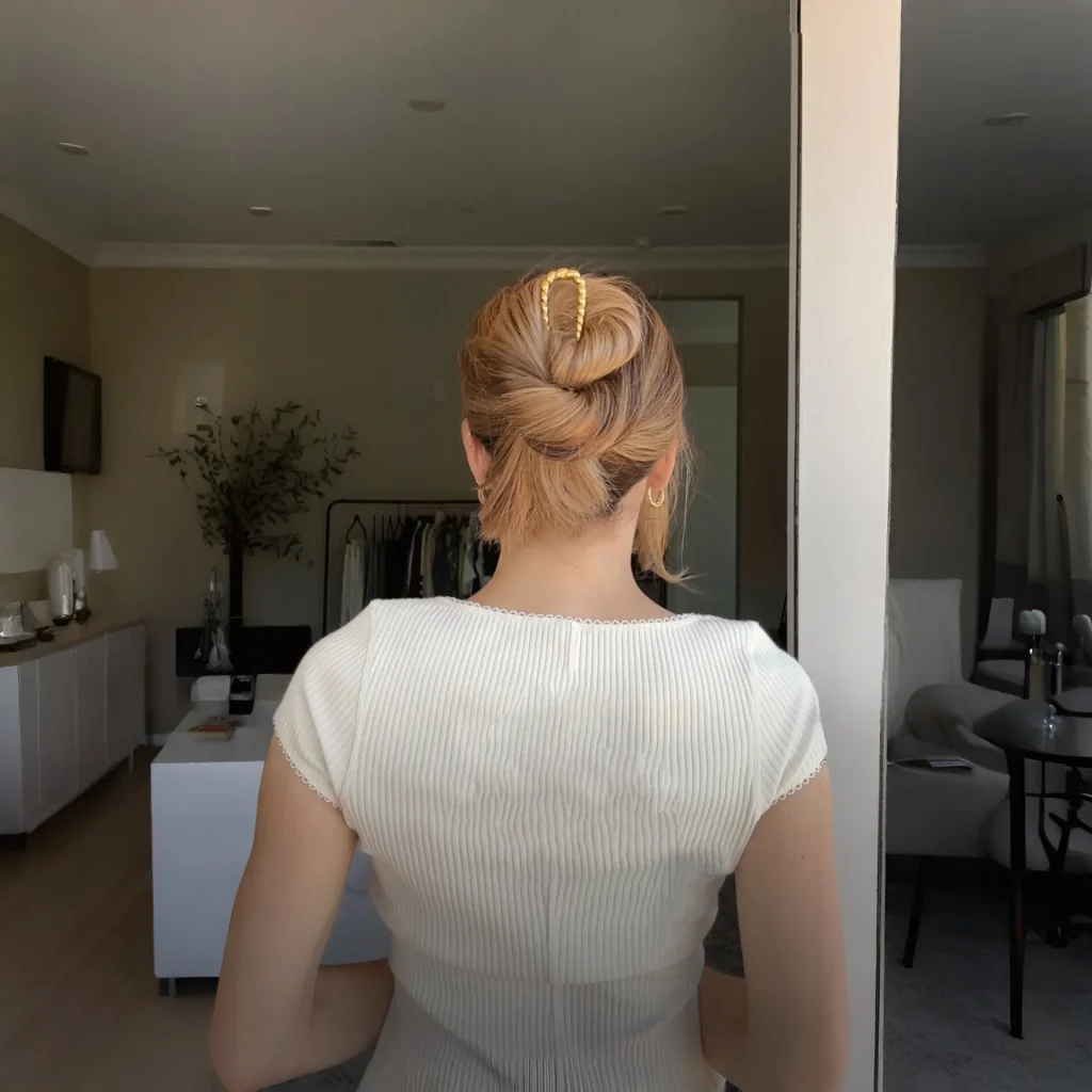 A swirling effect created with a claw clip, adding extra dimension to your updo.