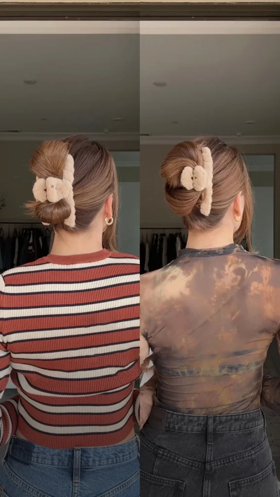 A relaxed, tousled updo using a claw clip for a comfortable yet trendy hairstyle.