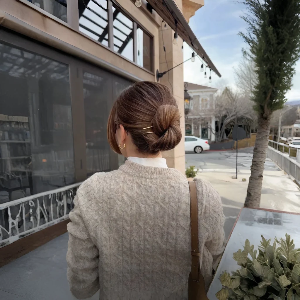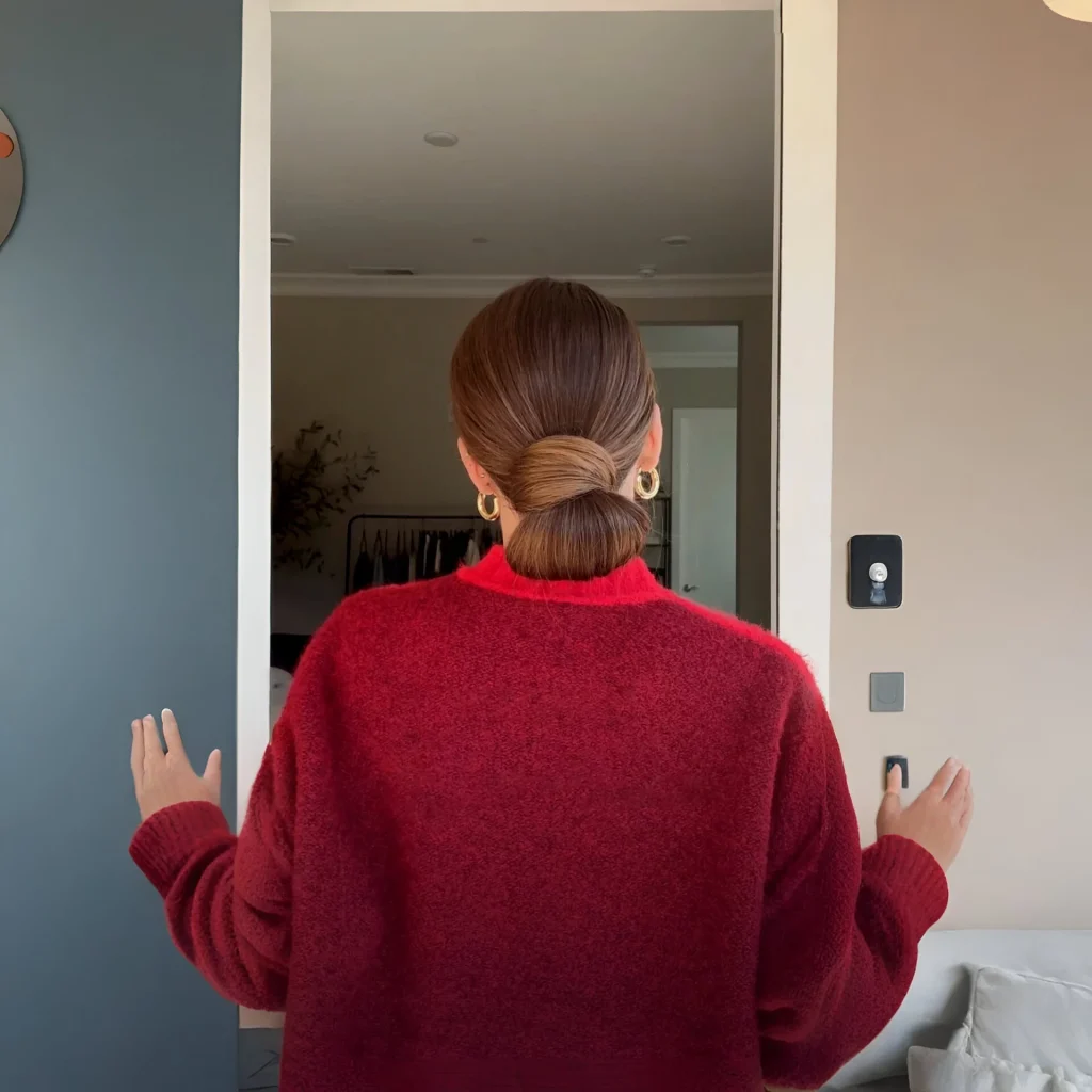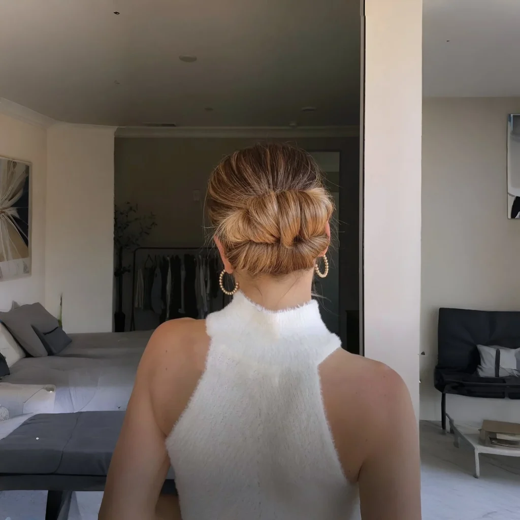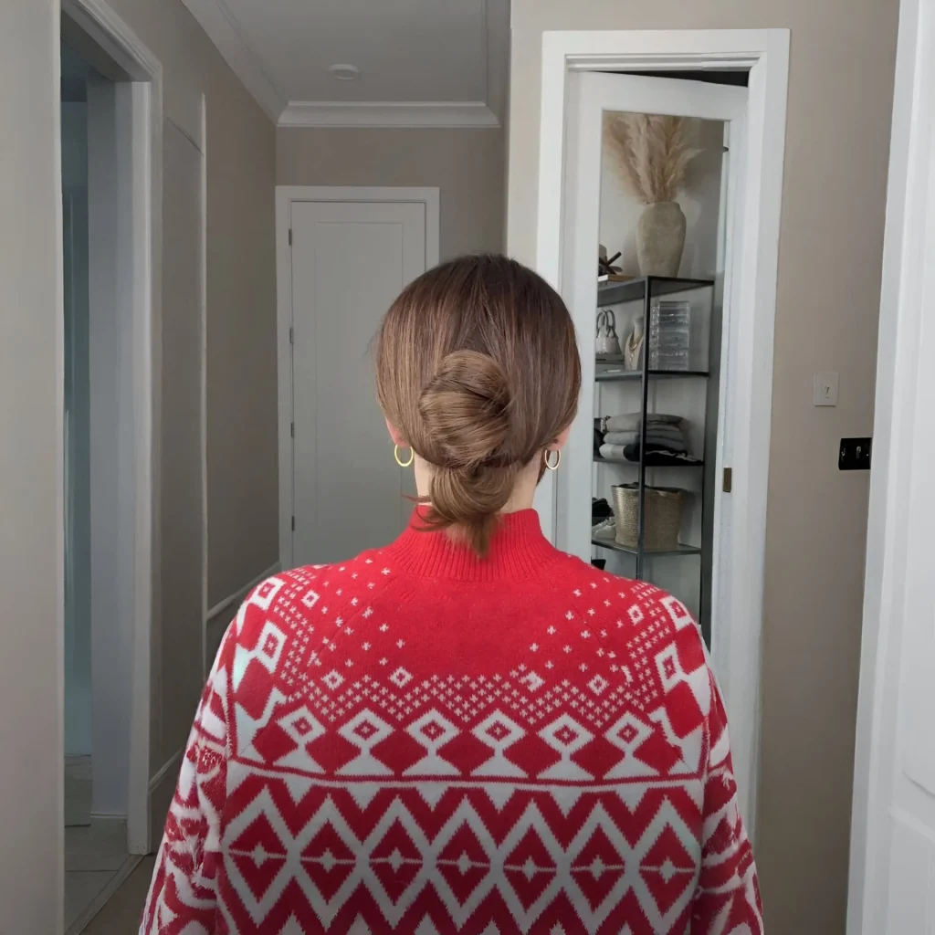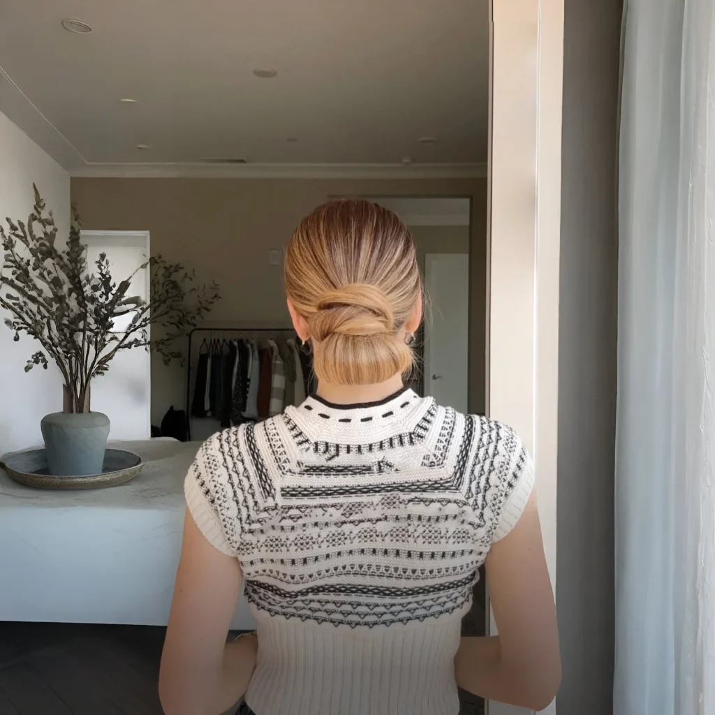 A low-maintenance, tucked-in bun that stays hidden under hats or scarves.