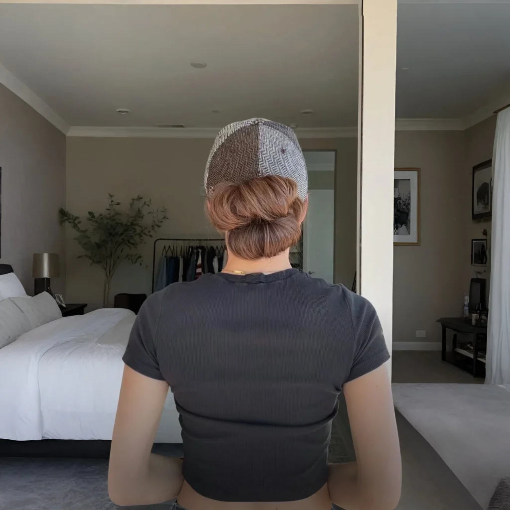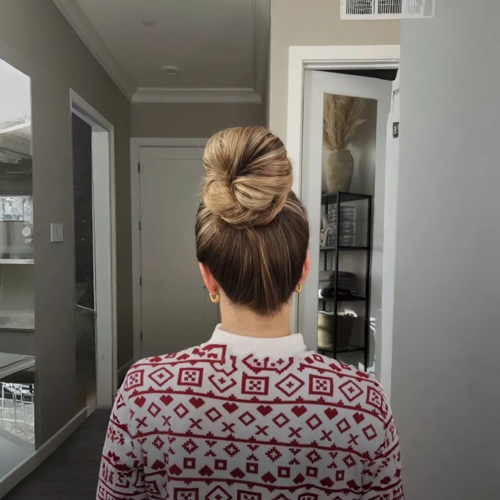 A two-layered bun that fits effortlessly under a hat while maintaining its volume.