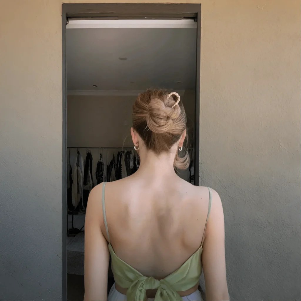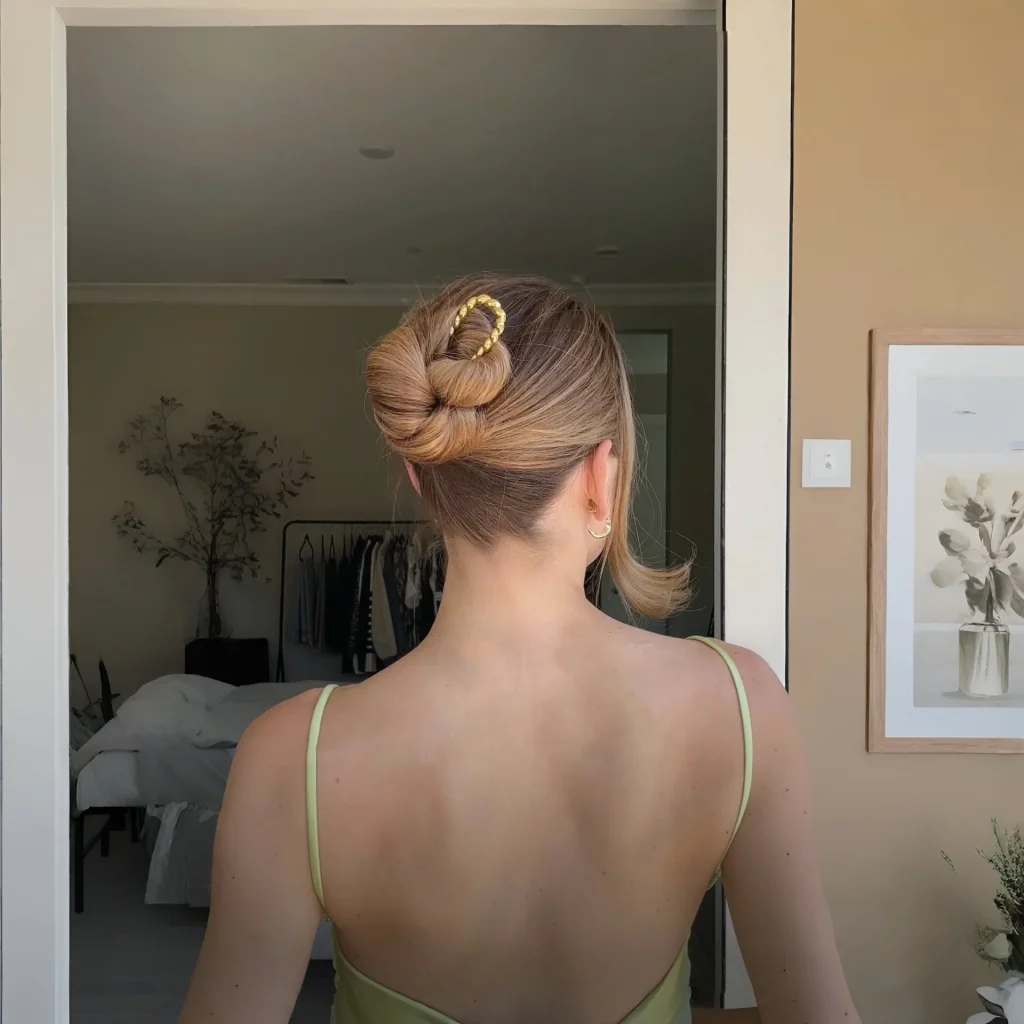 A double-layered messy bun for maximum volume and a carefree vibe.