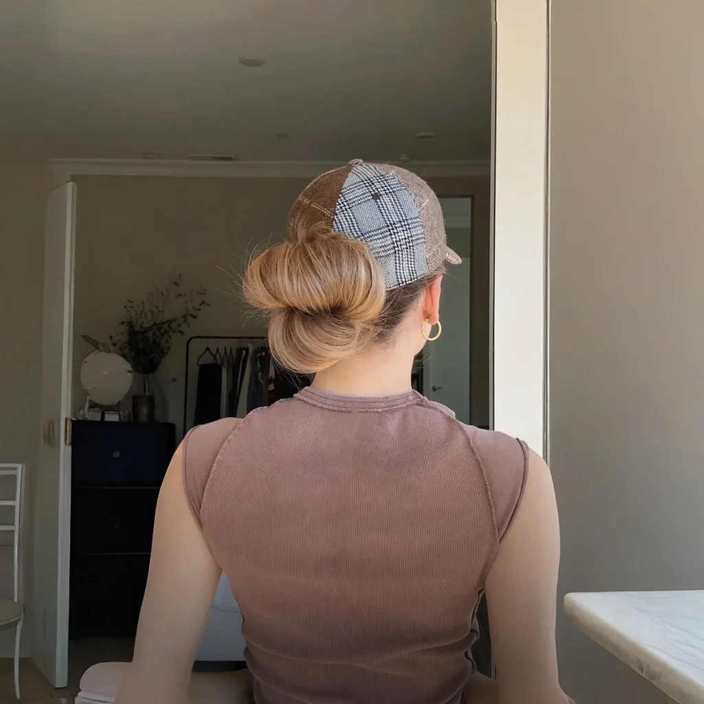 A sports-inspired low bun that pairs well with baseball caps or beanies.