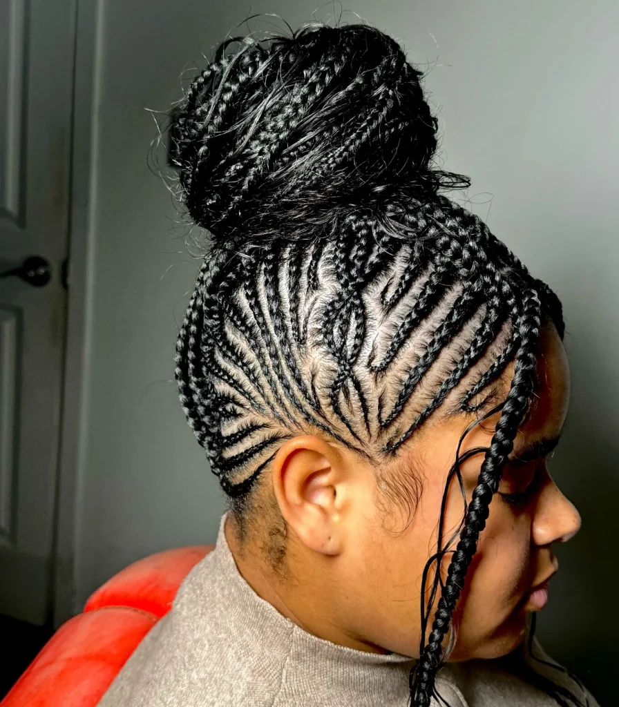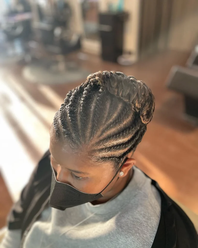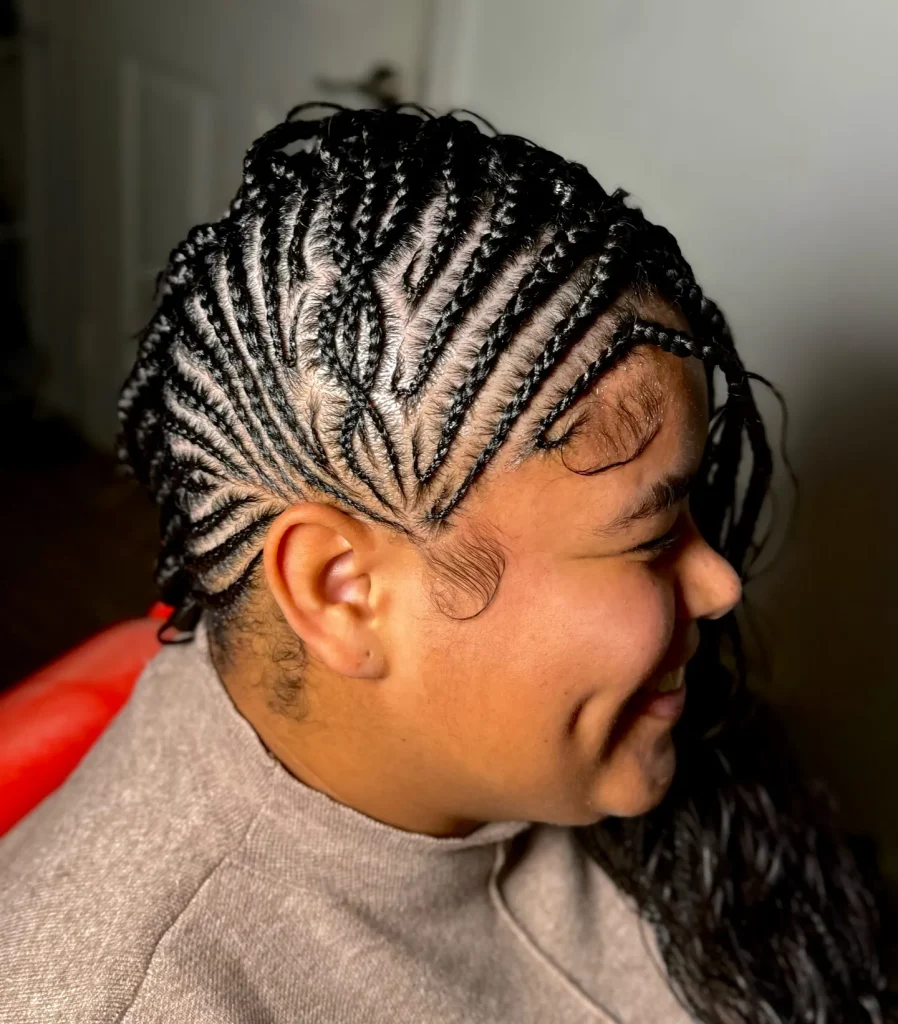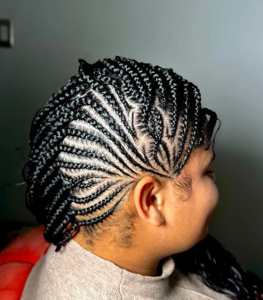 Feed-in braids give a natural look and are perfect for protective styling. They can be styled in various patterns for a unique look.