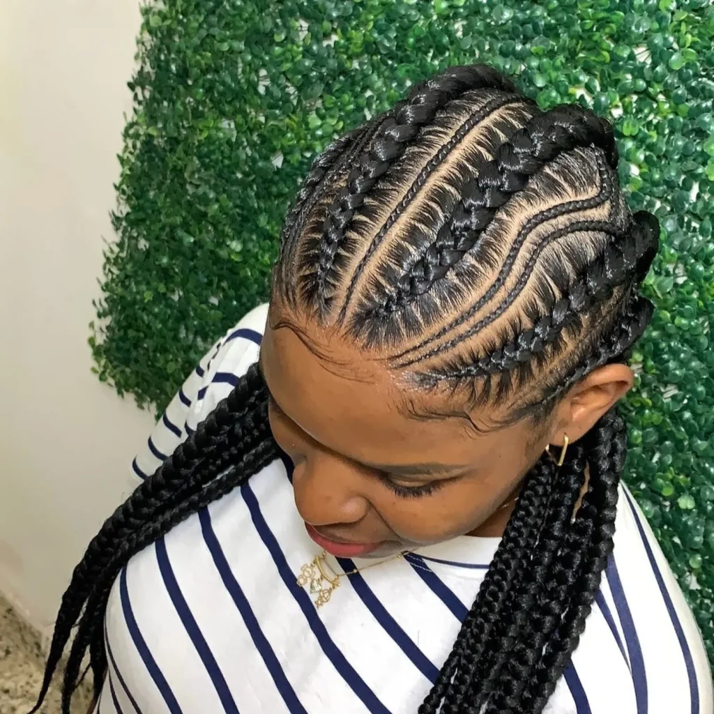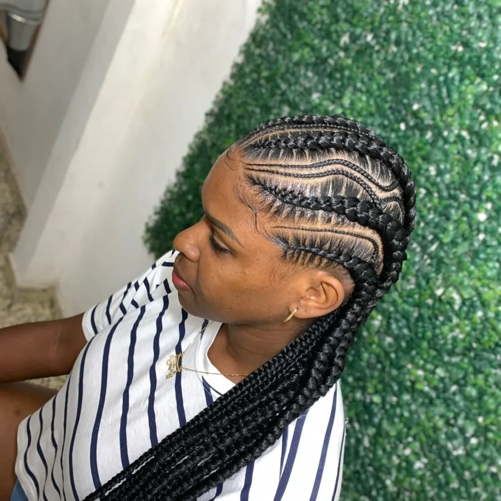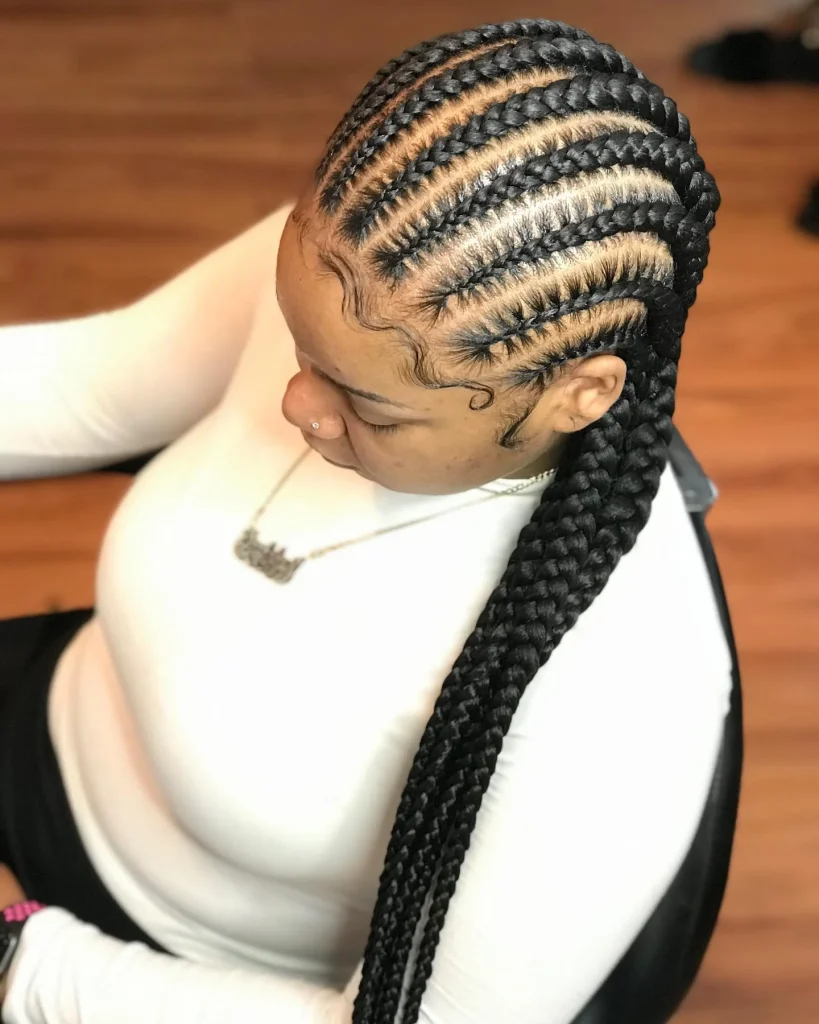 Feed-in braids give a natural look and are perfect for protective styling. They can be styled in various patterns for a unique look.