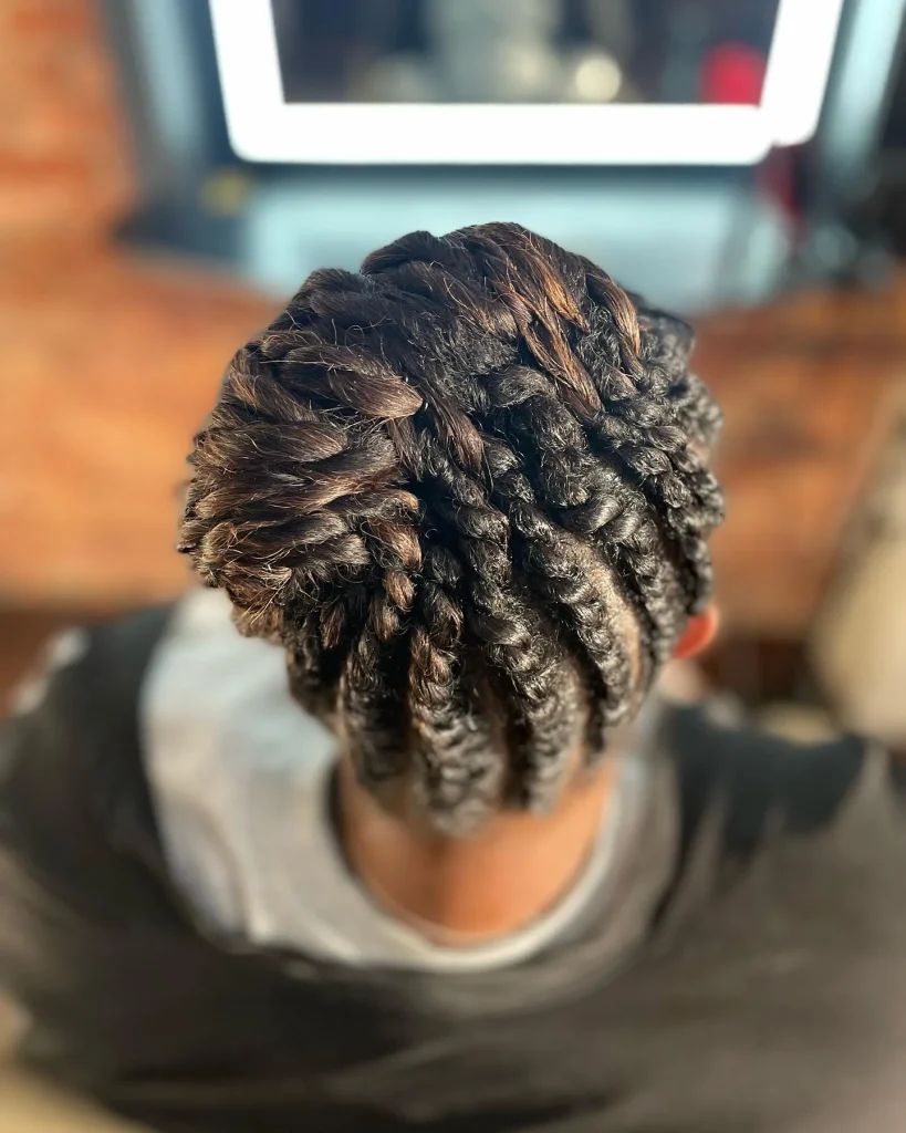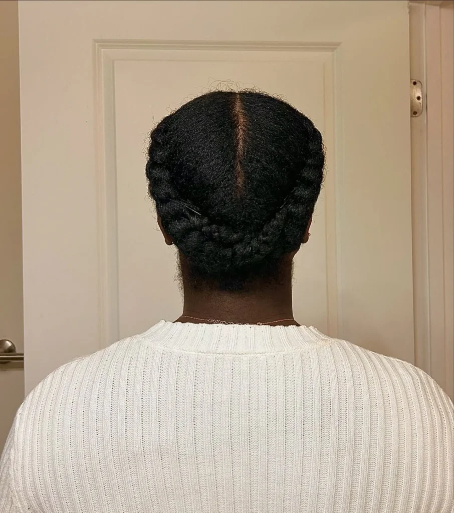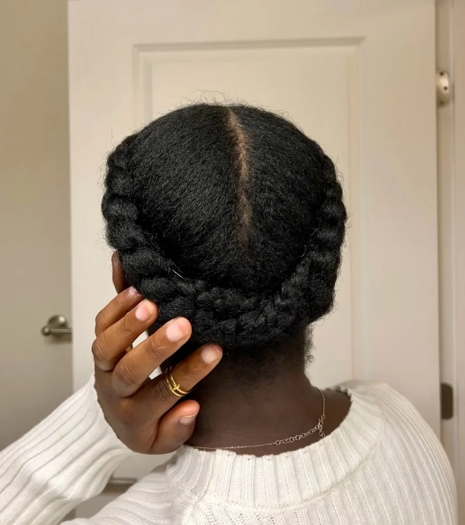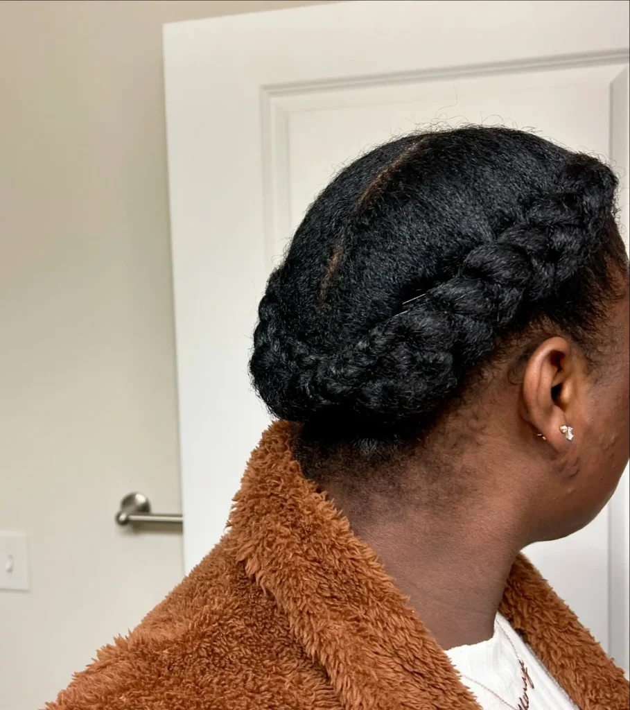 A flat twist crown is an elegant and protective style that wraps around your head like a crown. It’s perfect for a regal winter look.