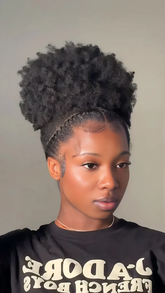 The high puff is a quick and easy style that showcases your natural curls. It’s perfect for days when you want a simple yet chic look.