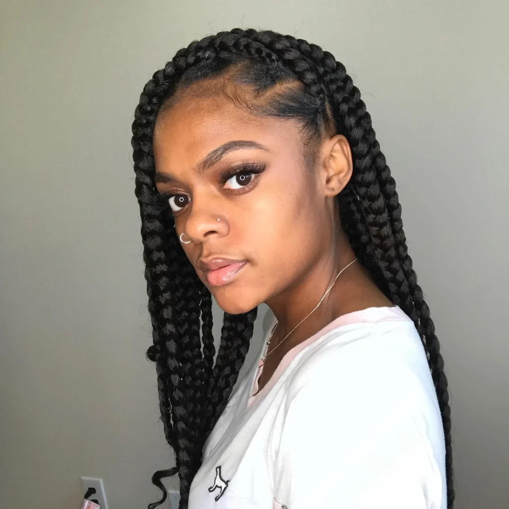 Jumbo knotless braids are lightweight and less tension on your scalp, making them a comfortable option for winter.