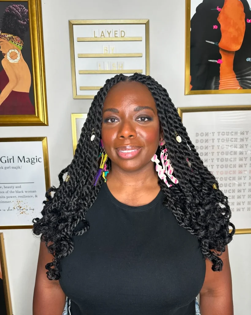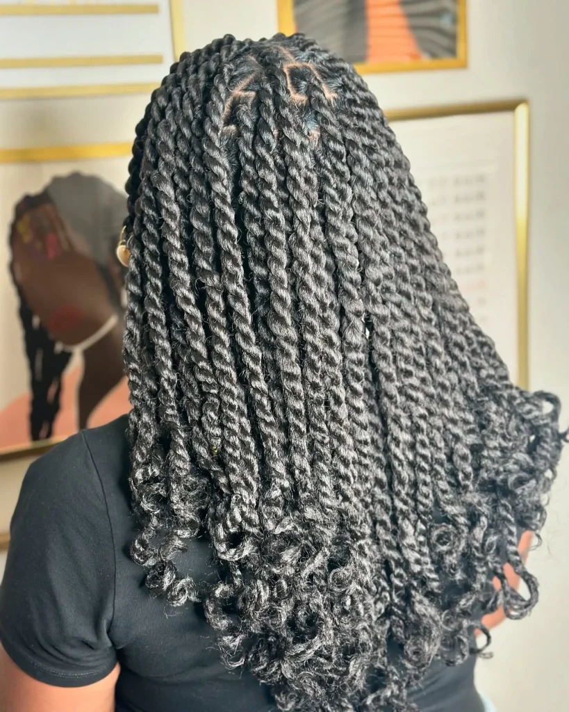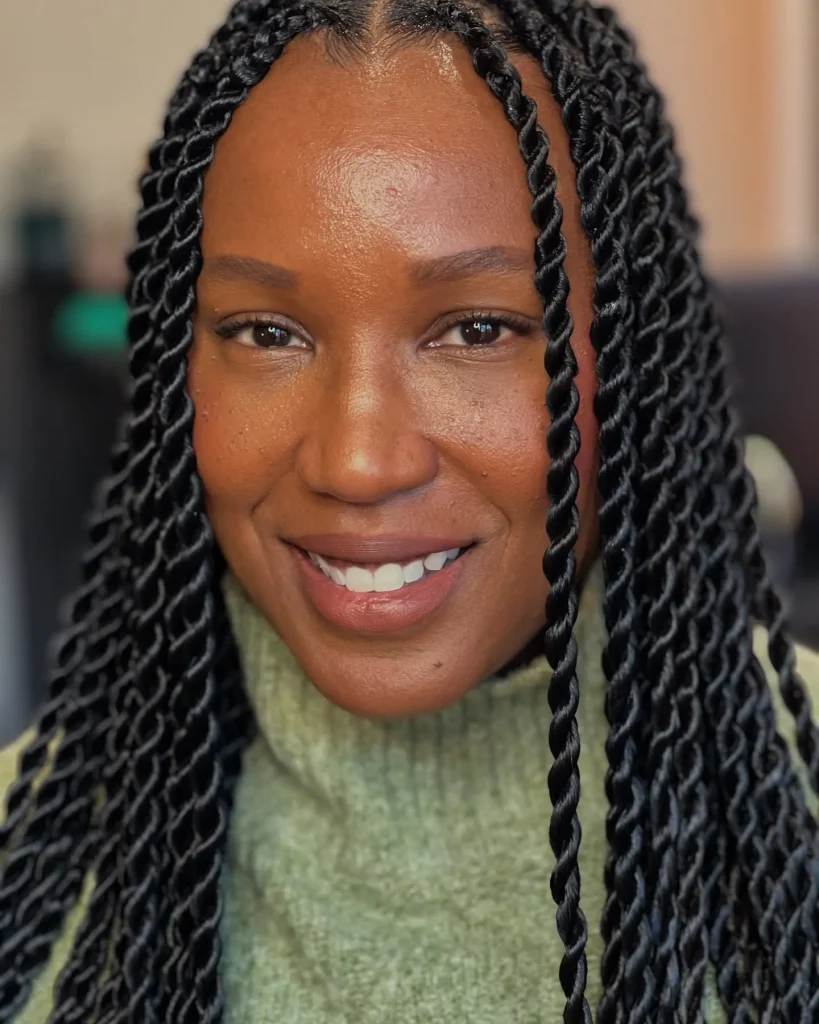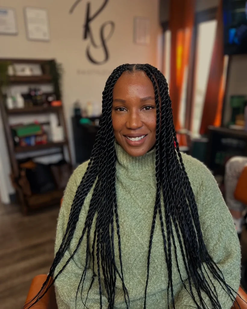 Senegalese twists are elegant and versatile. These twists can be worn long or short, making them a perfect winter hairstyle for Black women.