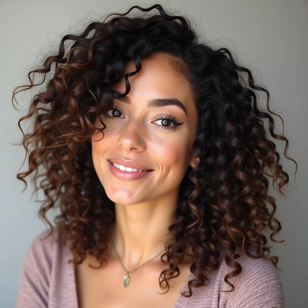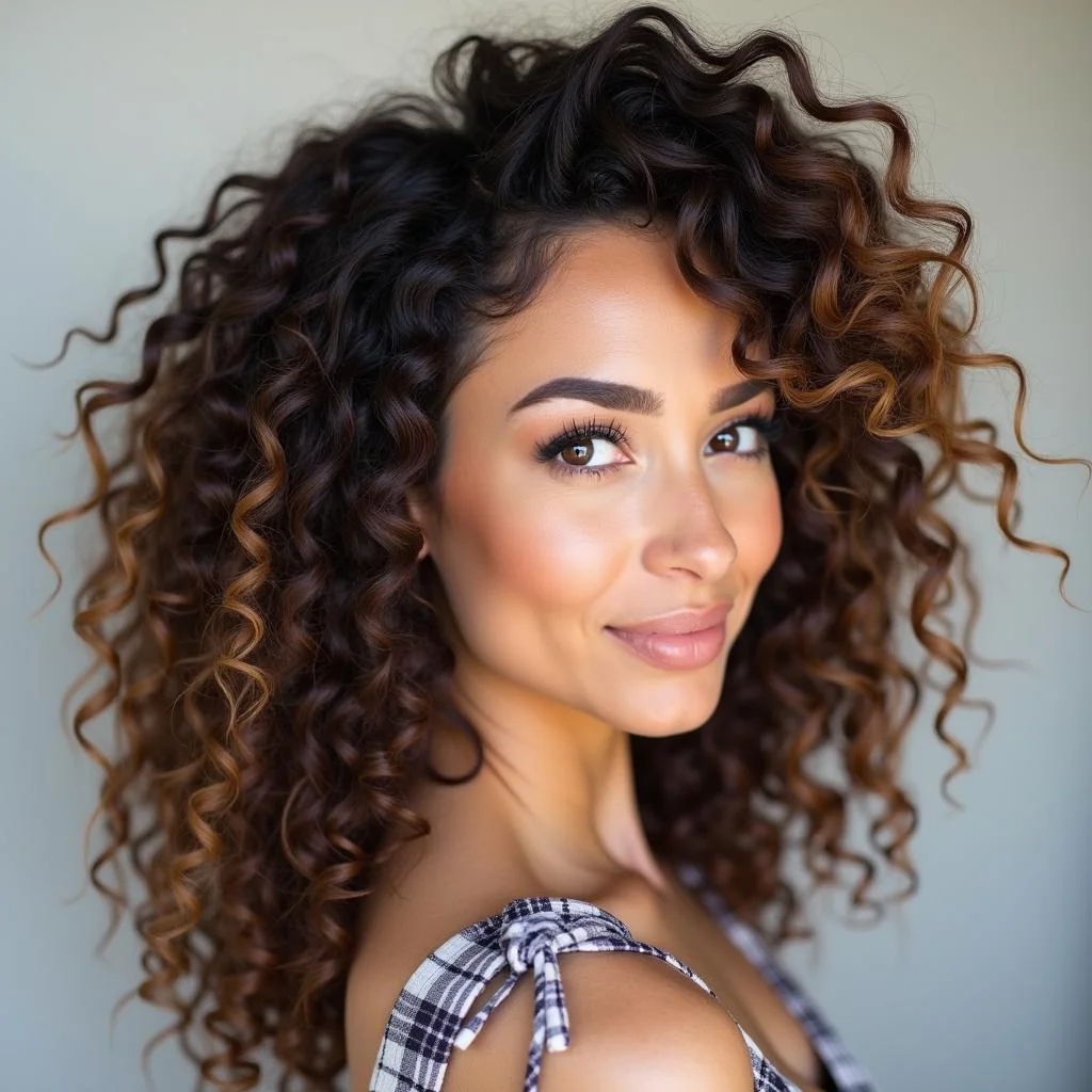 Layers can be tailored to frame your face, enhancing your features and drawing attention to your eyes and smile. This face-framing effect adds dimension and softness, making curls even more appealing.