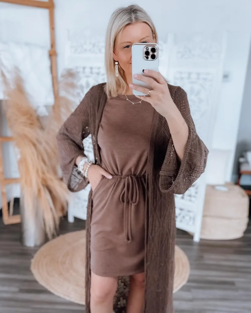 - The Look & Feel: Cozy, elegant, and effortlessly polished. A ribbed knit or sweater dress hugs in all the right places while remaining completely appropriate.