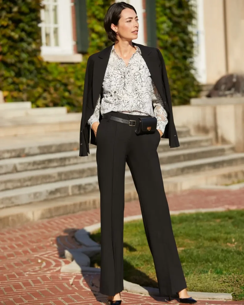 - The Look & Feel: This look is chic, comfortable, and commands a quiet confidence. Think wide-leg trousers paired with a silky blouse or tailored slacks with a crisp, detailed top.