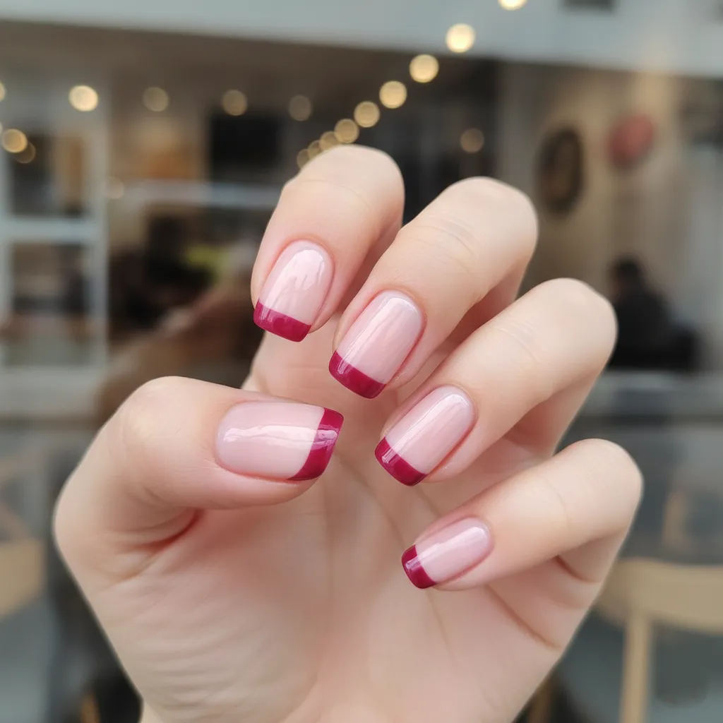 Request a “tonal French.” Be specific about your colors: “Sheer pink base with a raspberry tip.”