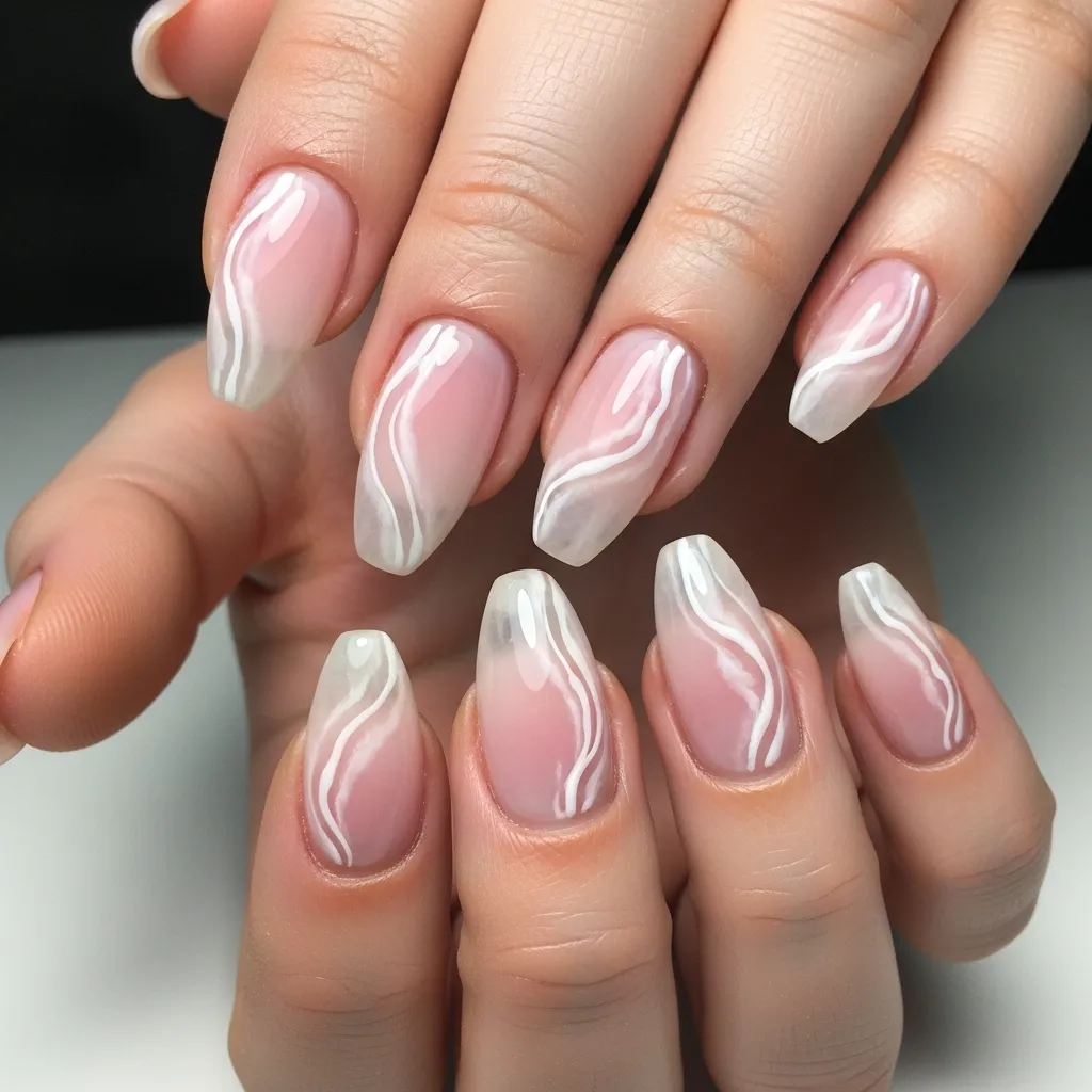 Request “rose quartz nail art.” A good artist will know this involves layering a sheer milky pink with delicate, bloomed-out white lines.