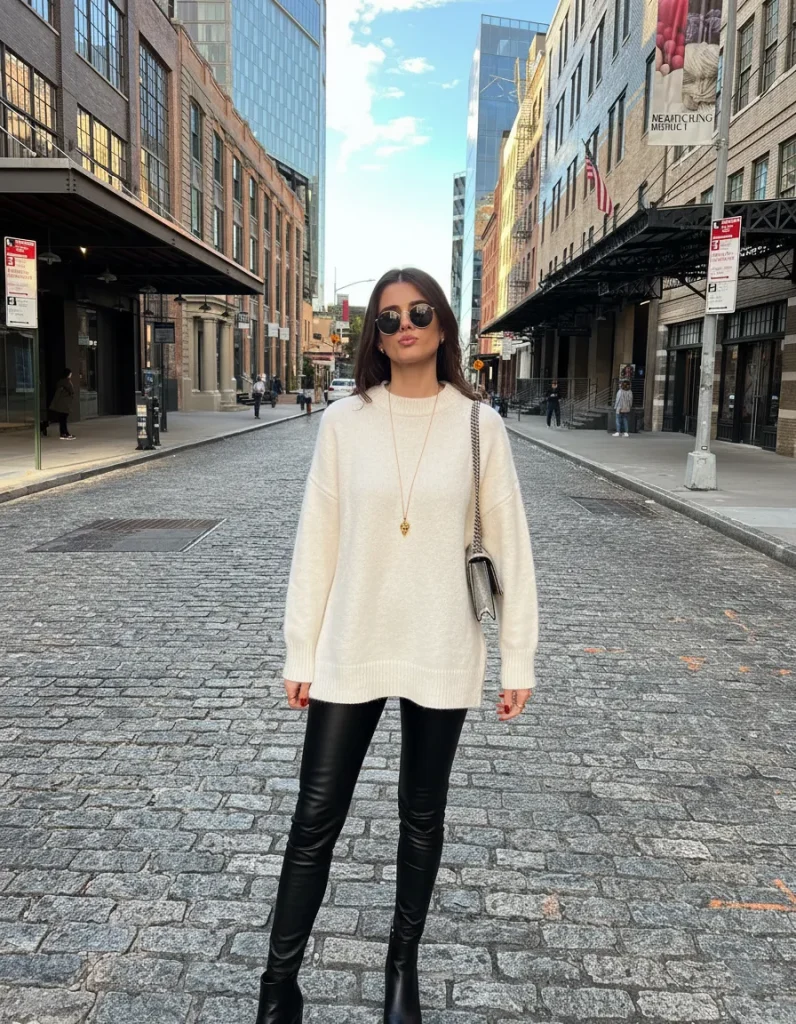 10. Faux Leather Leggings & an Oversized Sweater: Edgy Comfort
