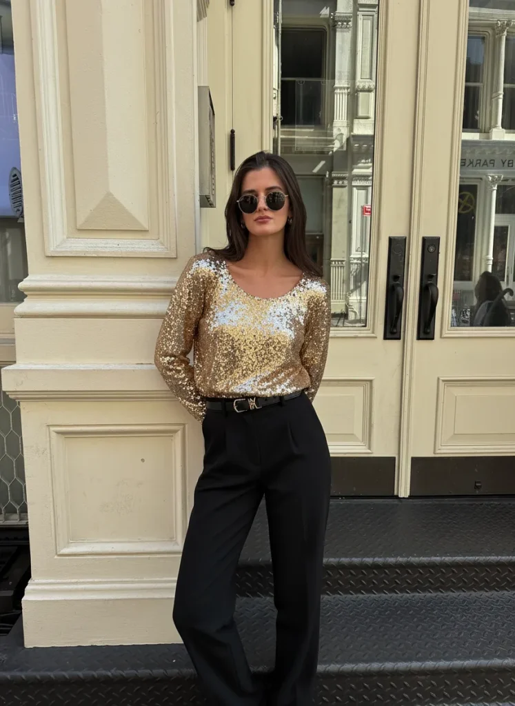 11. A Sequin Top & Black Pants: A Touch of Glamour