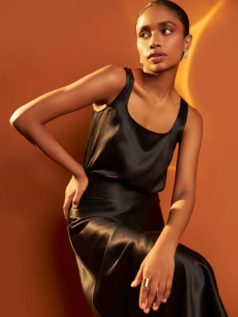 Effortlessly chic and alluring, the slip dress drapes beautifully and offers a touch of boudoir-inspired glamour.