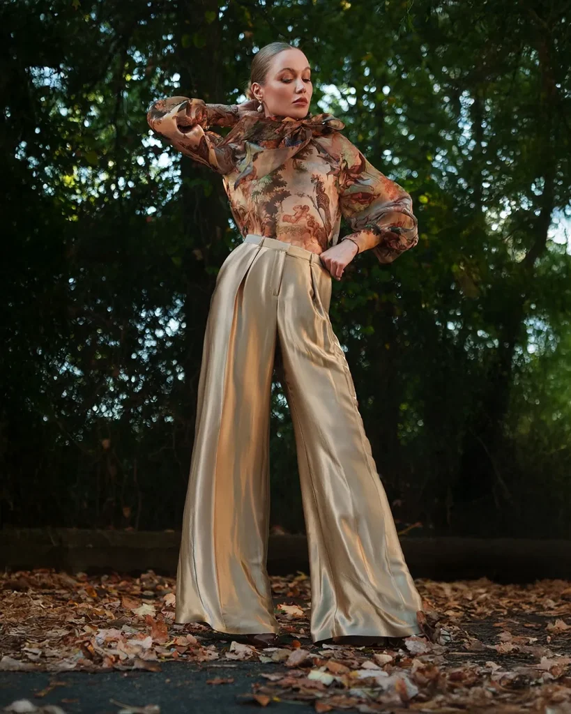 - How to Choose Yours: Look for a blouse in a soft, flowing fabric like chiffon or silk. Pair it with wide-leg or straight-leg trousers.