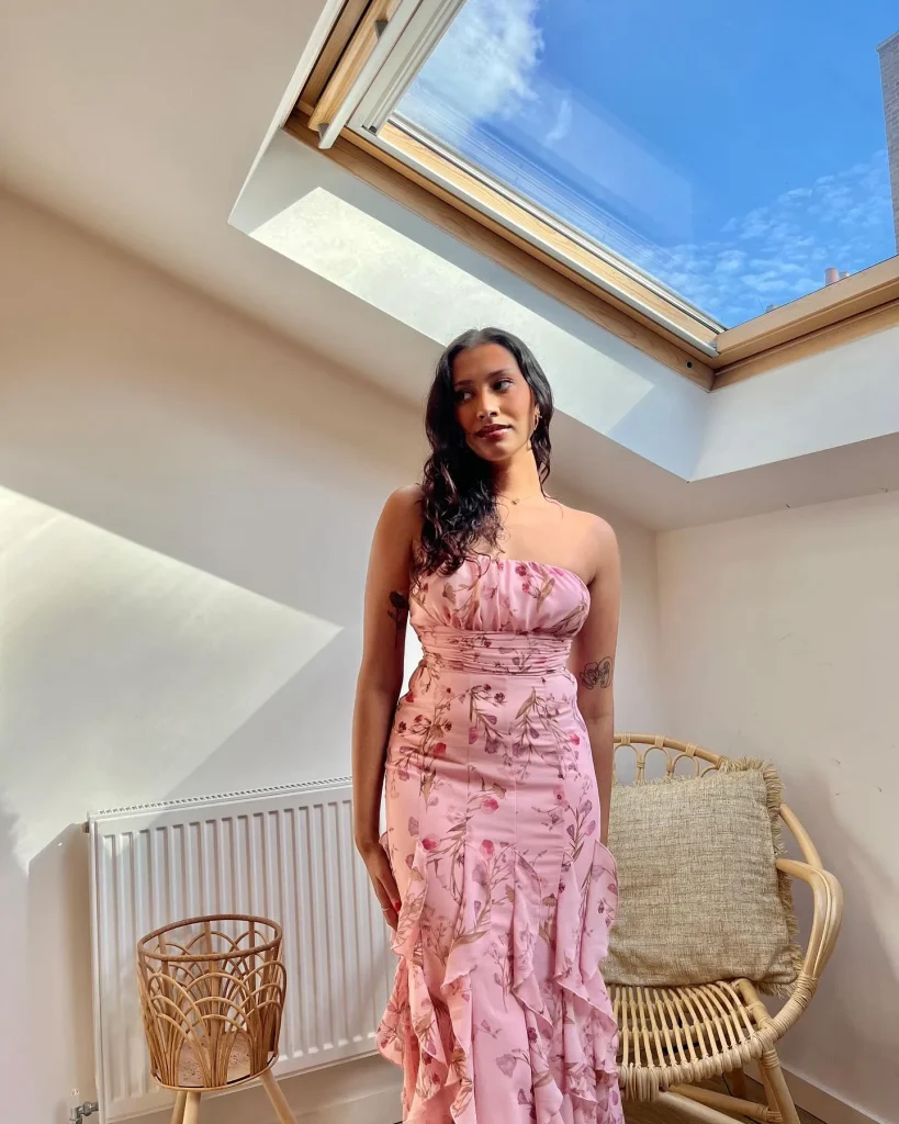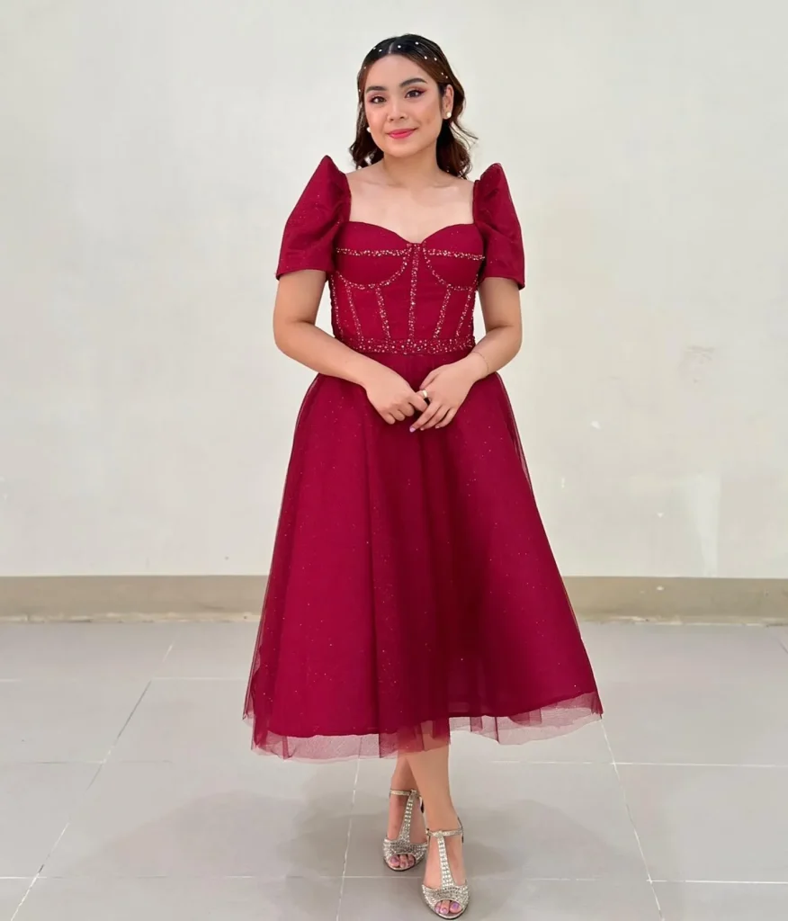 - Pair with nude or pastel heels.