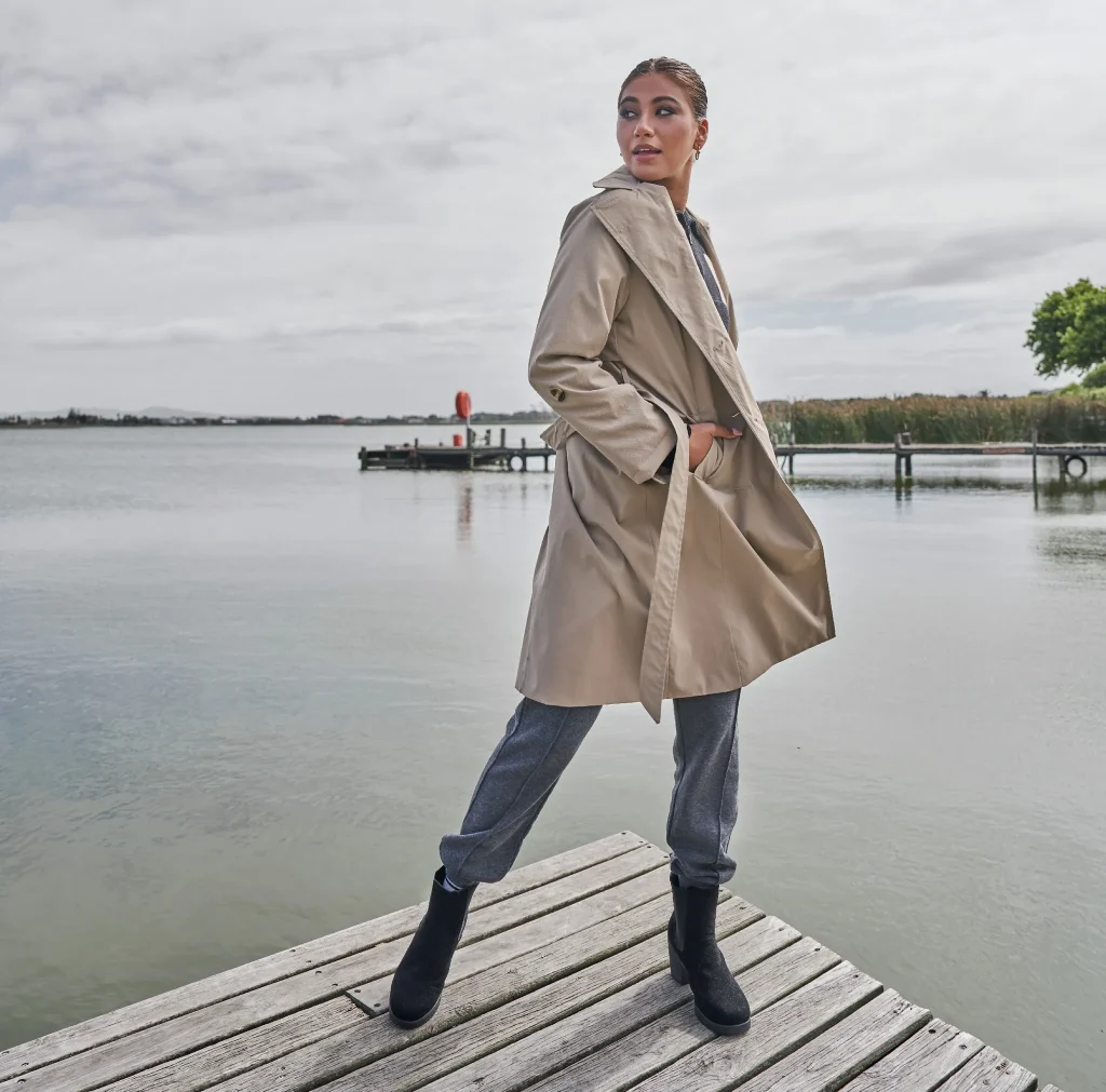 - Style with a belted waist for a sleek silhouette.