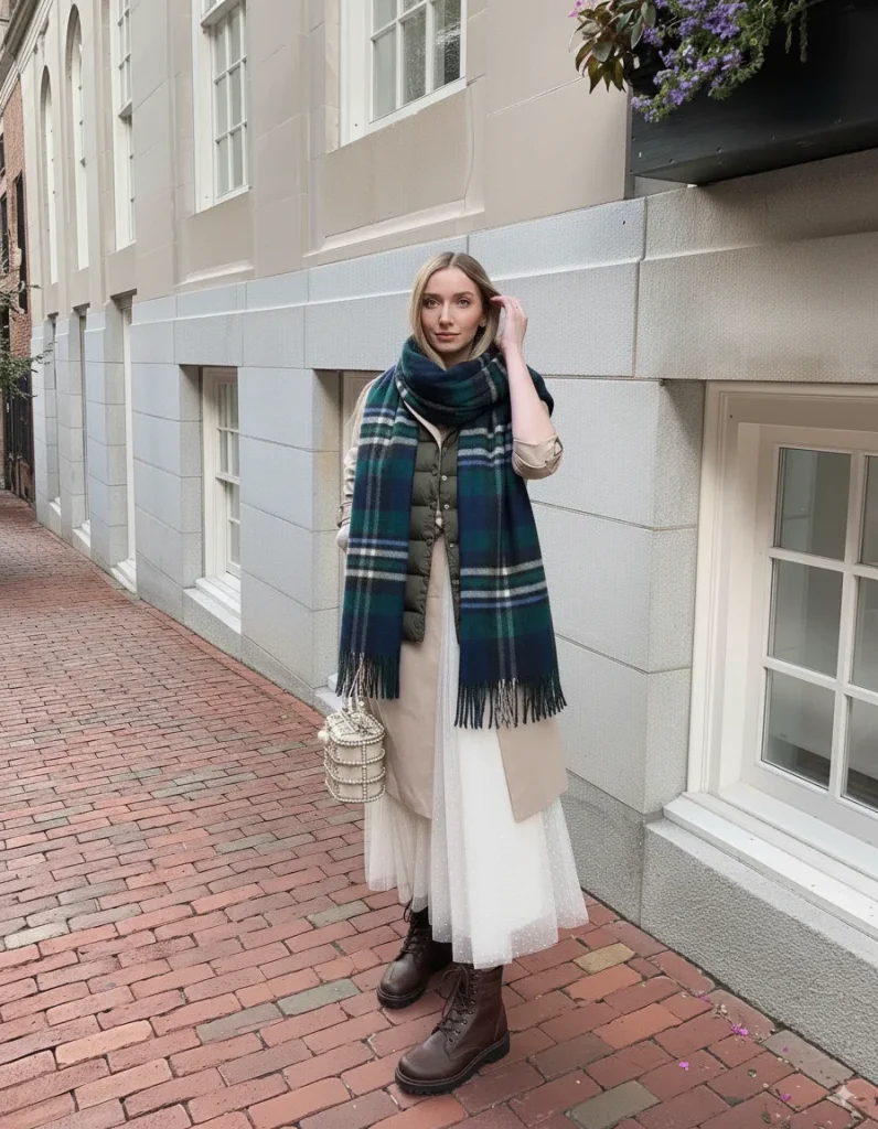 - Museum & Gallery Visit: Dark Wash Denim + Fisherman Sweater + Wool Coat + Waterproof Leather Boots + Plaid Scarf + Crossbody Bag.