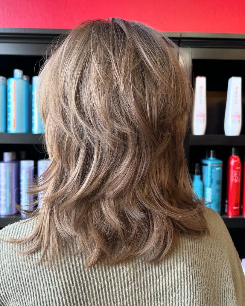Shaggy layers add a rocker-chic vibe to medium-length hair. This layered style is ideal for those looking to add texture and volume.