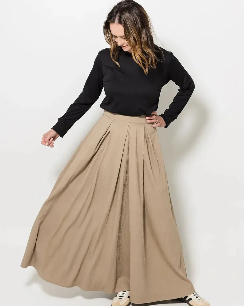 - The Look & Feel: A long skirt in a substantial, natural-feeling fabric like linen, corduroy, or wool. Its color is its primary feature.