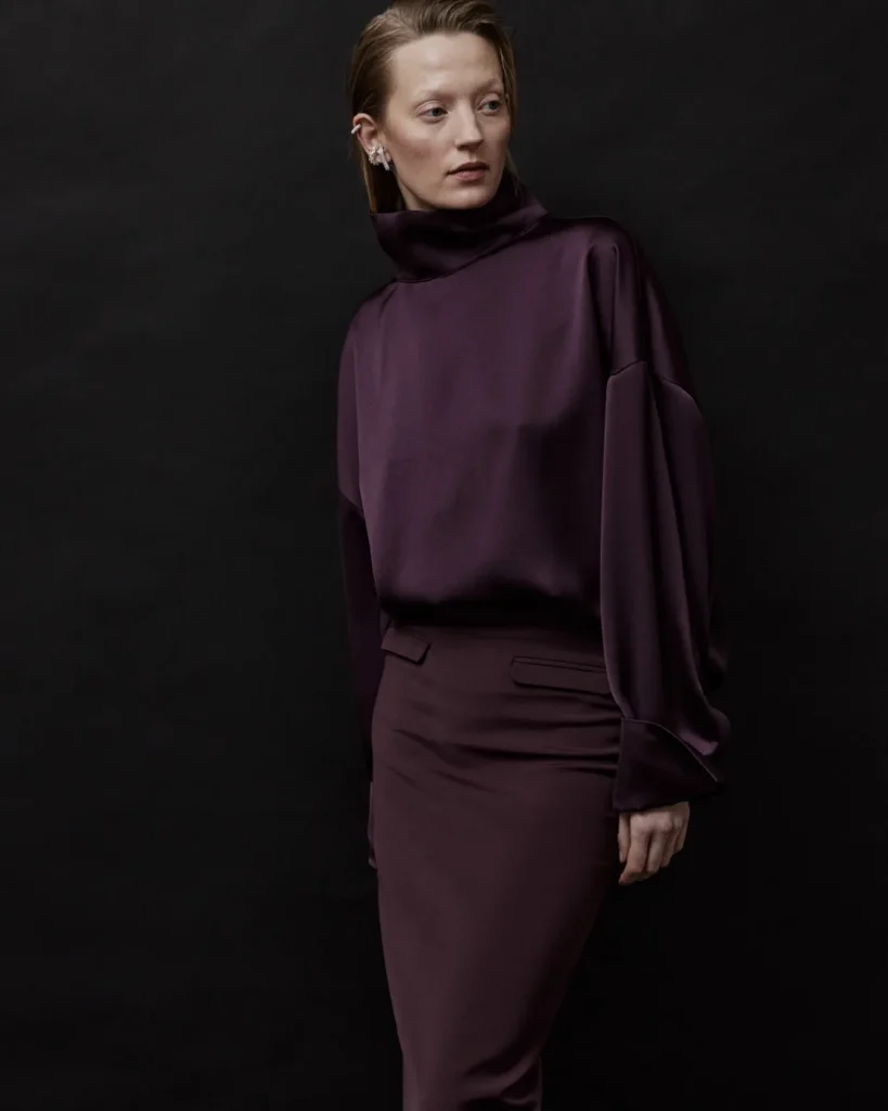 - The Look & Feel: A key garment in velvet, such as a blazer, flared trousers, or a minimal slip dress. Its appeal is its rich, non-reflective surface.
