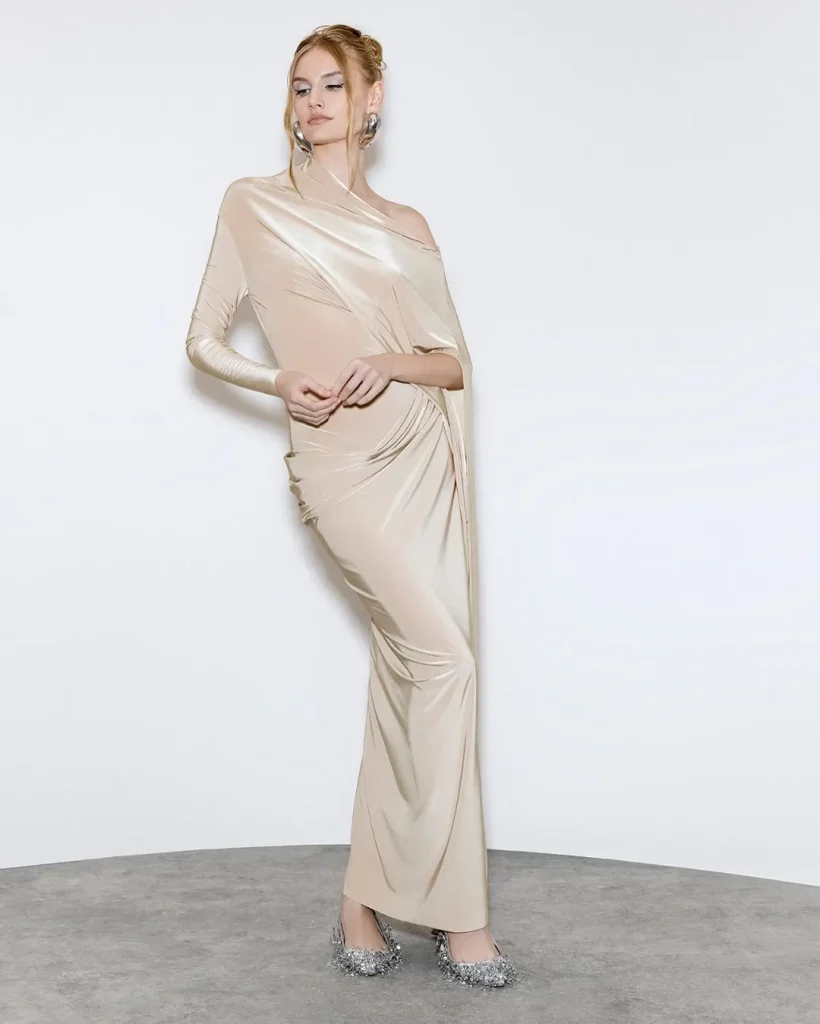 - How to Choose Yours: The fabric determines the effect. Sheer chiffon creates an ethereal, light form. A heavy knit or velvet creates a more substantial, sculptural shape.