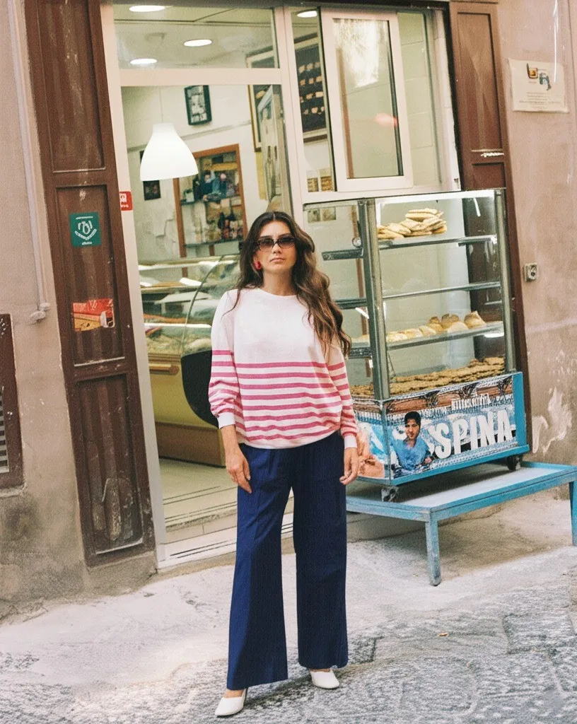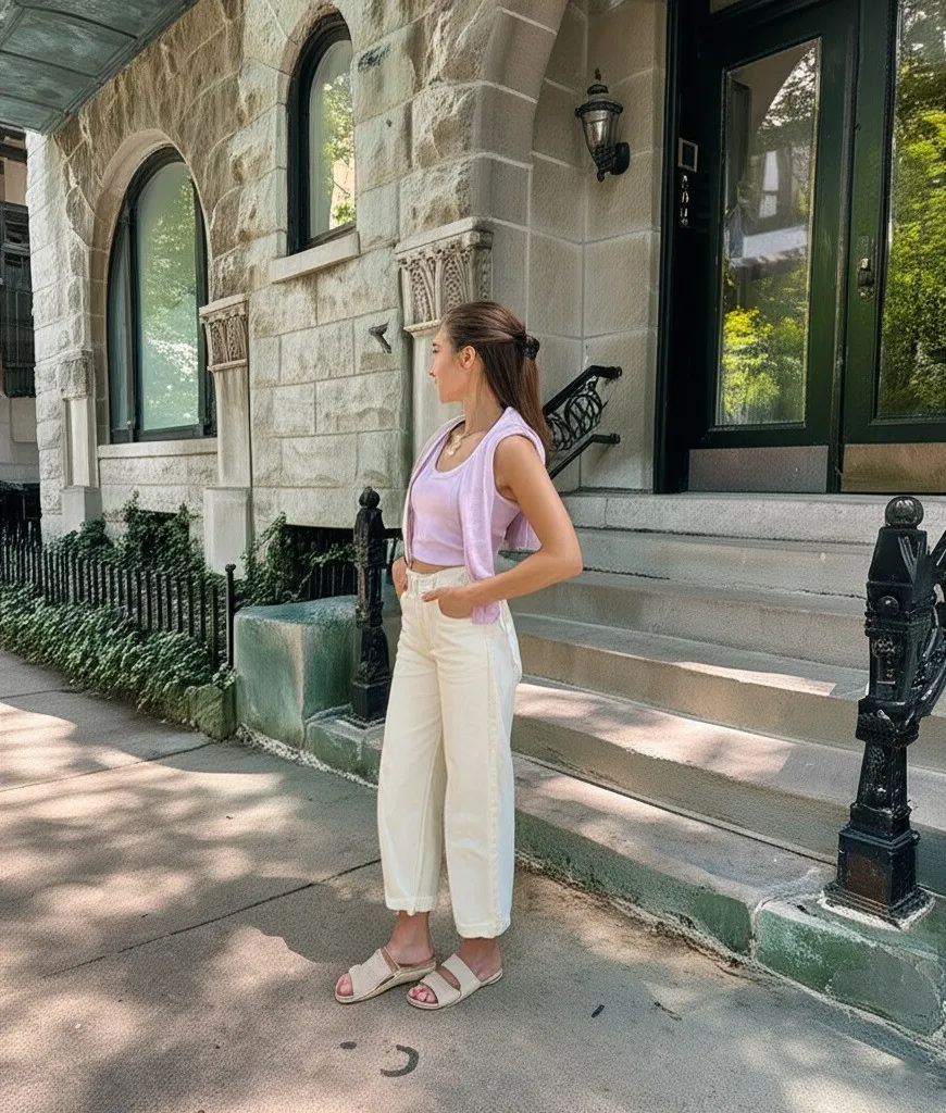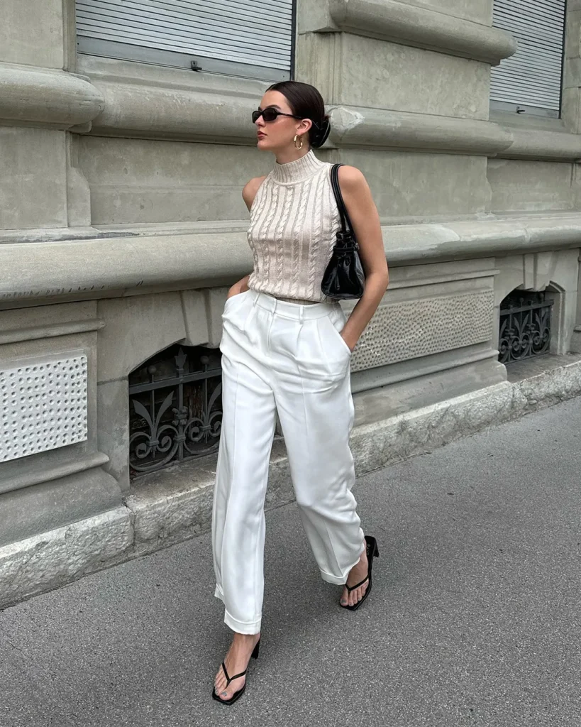 4. Wide-Leg Trousers and Sleeveless Blouse